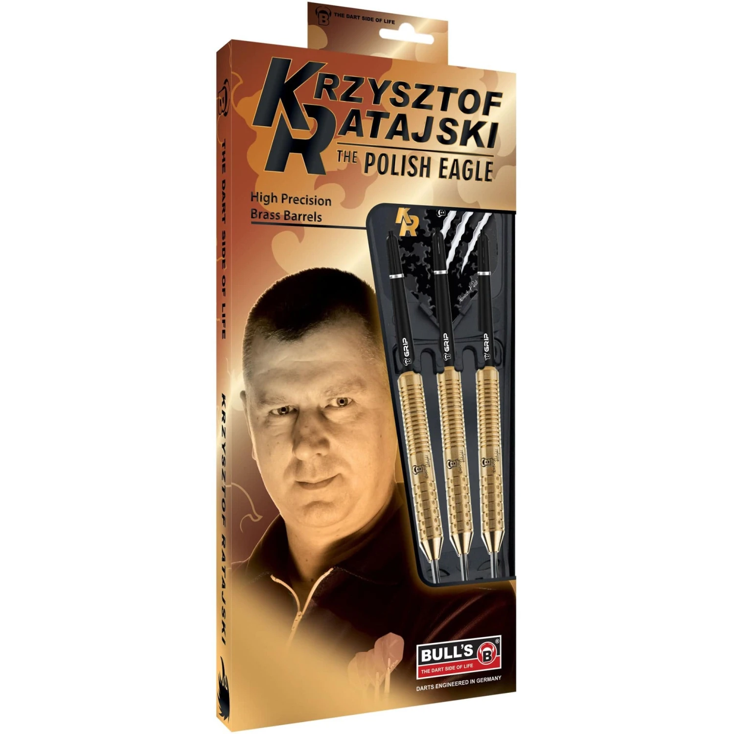BULL’S Krzysztof Ratajski Steel Tip Brass Darts – Gold. Features: Brass Coated Barrels, 1 Set of Bull’s Flights, 1 Set of Bull’s Shafts.