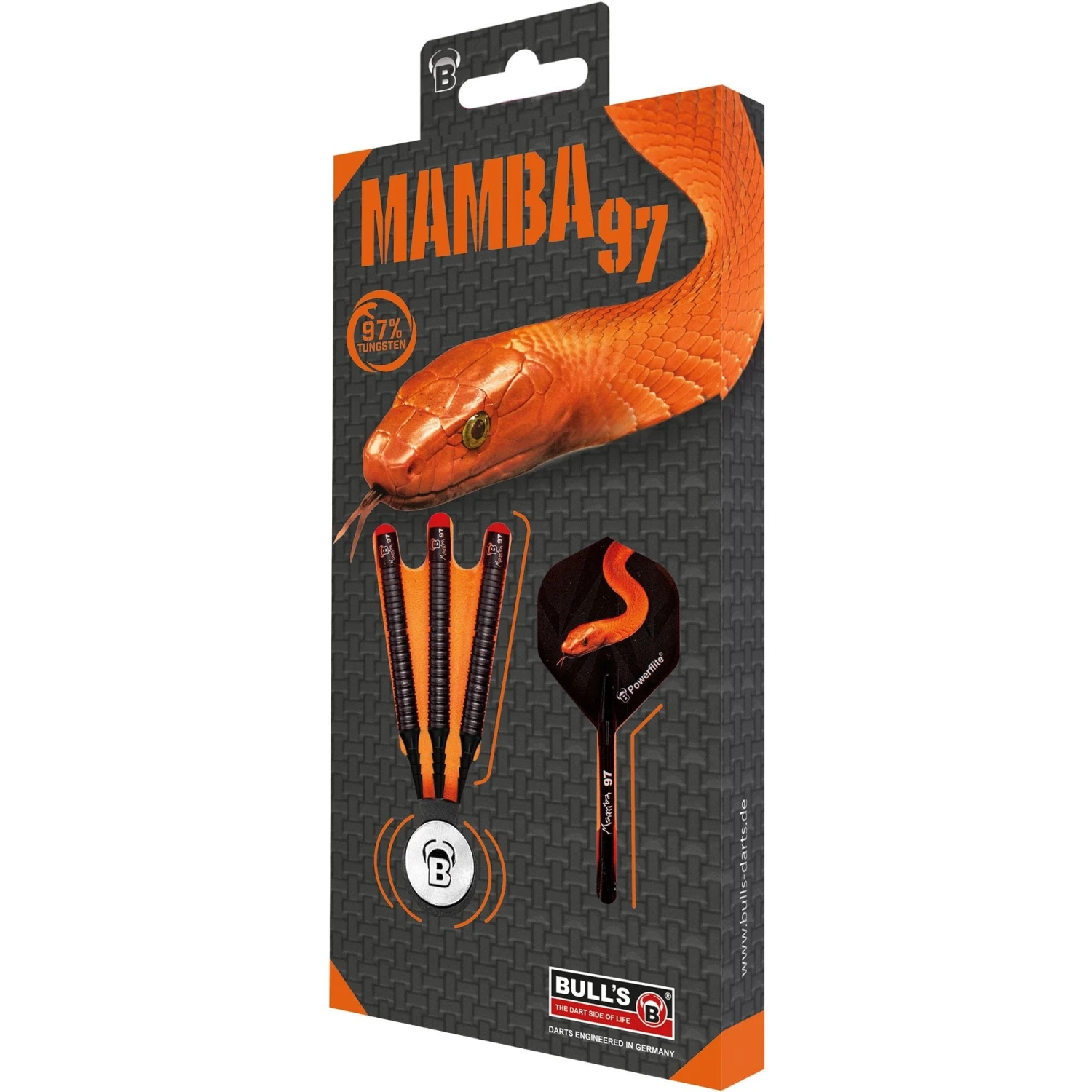 BULL’S Mamba 97 Soft Tip Darts – M6 – 97% Tungsten. Features: 97% Tungsten Barrels, 1 Set of Bull’s Flights, 1 Set of Bull’s Shafts.