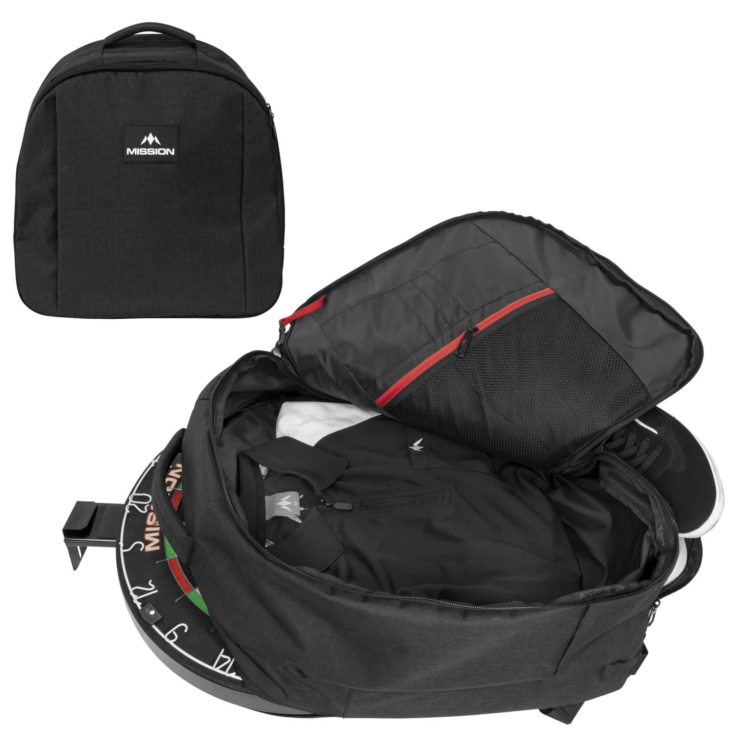 Complete Travel Bundle Need to play pro darts on the go? This Complete Travel Bundle fits into the supplied Mission Pro Tourer Rucksack and includes everything you need to play pro darts on holiday, in your hotel, or when visiting a mate! And… you can always use it at home too if you don’t want a permanent set-up! Put a Mission Samurai II pro dartboard into the special rucksack pocket. (It’s the official dartboard of the UKDA and the SDA and is fully WDF approved). Add a Designa Door Hanger to hang the board, plus a Mission Toeline and Mission Measuring Tape to make sure everything is how you want it. To complete the set-up, unfold the portable Mission Torus 100 travel light, clip it to your board, then add the 4 pieces of your grey Designa Jigsaw Surround. Everything you need in a handy bag! Sorted! And there’s still plenty of room for your favourite darts, shirt and your toothbrush! This set up would be £178.70 if bought separately, but comes with a big discount as a bundle. The Complete Set Up Bundle includes: •Mission Samurai II dartboard •Mission Torus 100 Folding Portable Travel Light •Pro Tourer Rucksack •Designa Door Hanger •Designa Jigsaw Surround (grey) •Mission Toeline •Mission Measuring Tape