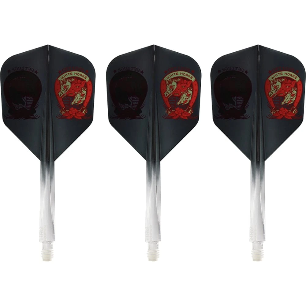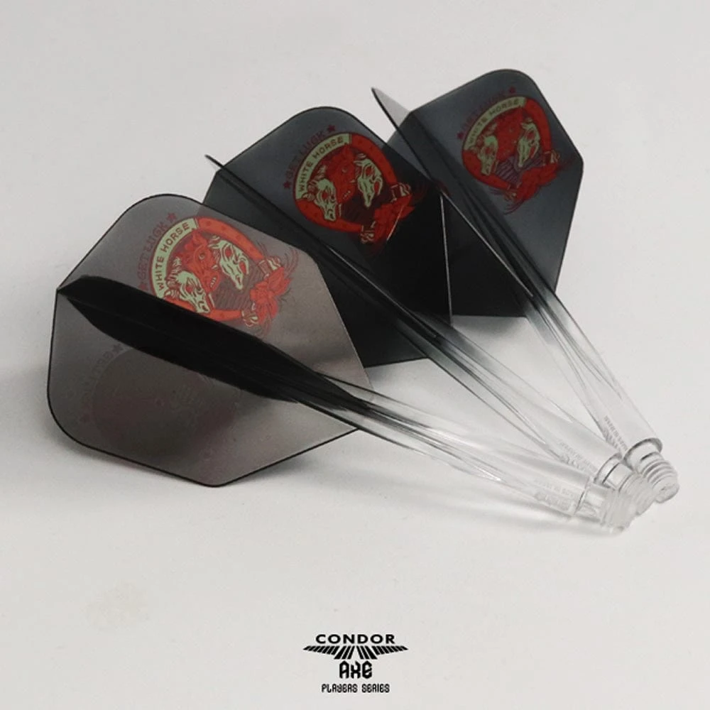 The Condor AXE player dart flights are designed to provide improved accuracy and stability in-flight. These clear black Small Standard flights with the Horseshoe design for Yuki Yamada are made from a durable polymer material and are available in 3 sizes. The long Horseshoe flights are measured from the ridge of the screw to the joint/link between the clear black Small Standard flights and the clear black long stem. Shaft length 33.5mm