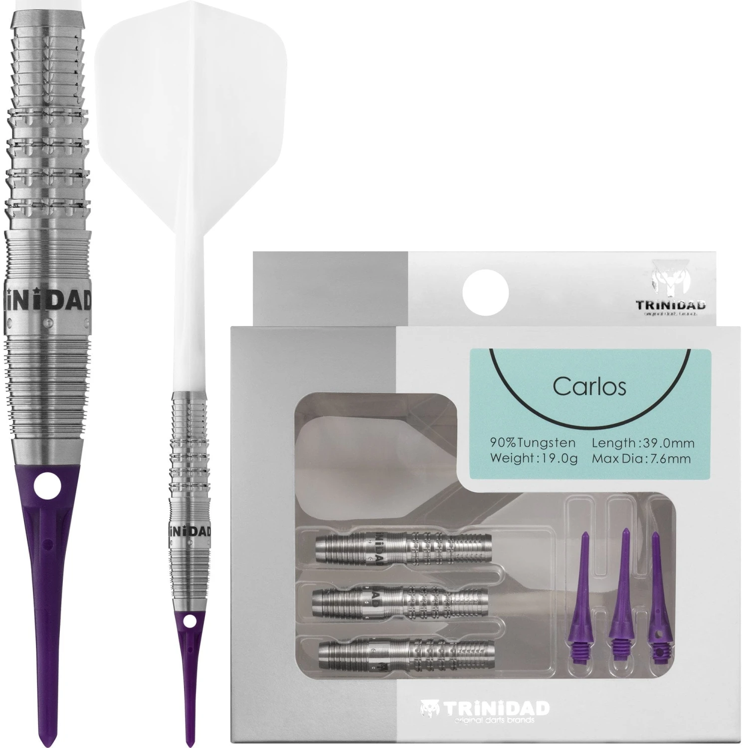 Trinidad Pro – Soft Tip Dart Barrels – 90% Pro Series – Carlos. Features: 90 Percent Tungsten Barrels, Condor Zero Stress Flights and Shaft System, Soft Tip Points. Thread: 2ba