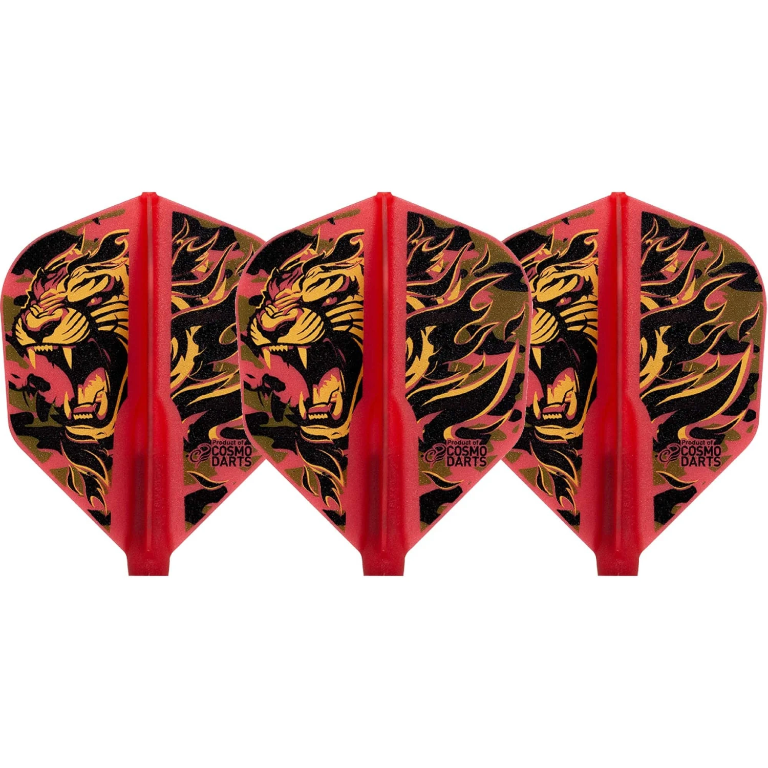 Cosmo Fit Flight Pro – Nasir Bomba – Shape – Red – Malaysia Tiger. These fit flight models feature the collaborated designs from the player and the team at Cosmo. The standard version is 30% thicker than the AIR versions. The flights are to be used with any Cosmo Fit Shaft. Each pack contains 3 flights.