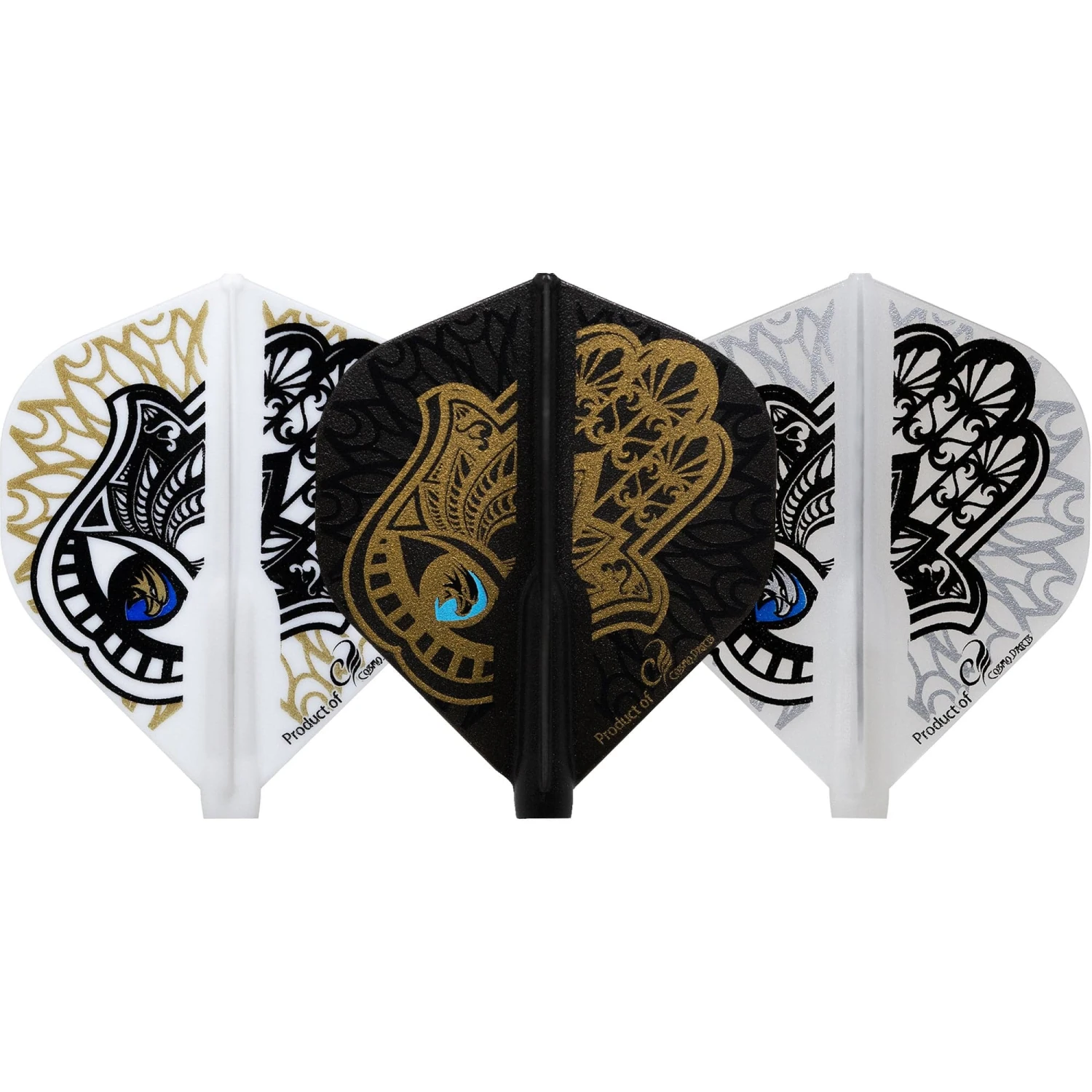 Cosmo Fit Flight – Ricardo Perez Ibarra 2 – Standard – Mix – Eye. These fit flight models feature the collaborated designs from the player and the team at Cosmo. The standard version is 30% thicker than the AIR versions. The flights are to be used with any Cosmo Fit Shaft. Each pack contains 3 flights.