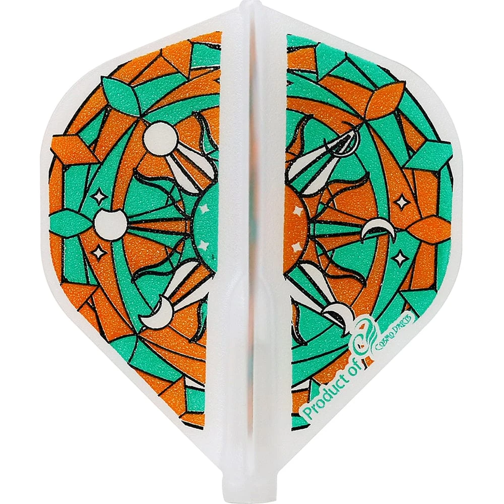 Cosmo Fit Flight Moon Phase Standard shape dart flights. The Fit Flight is the most innovative Flight and Shaft System. These standard shape Moon Phase flights have a moon phase design on a mixed blue, red and green background. To be used with the Cosmo Fit Flight Shafts.