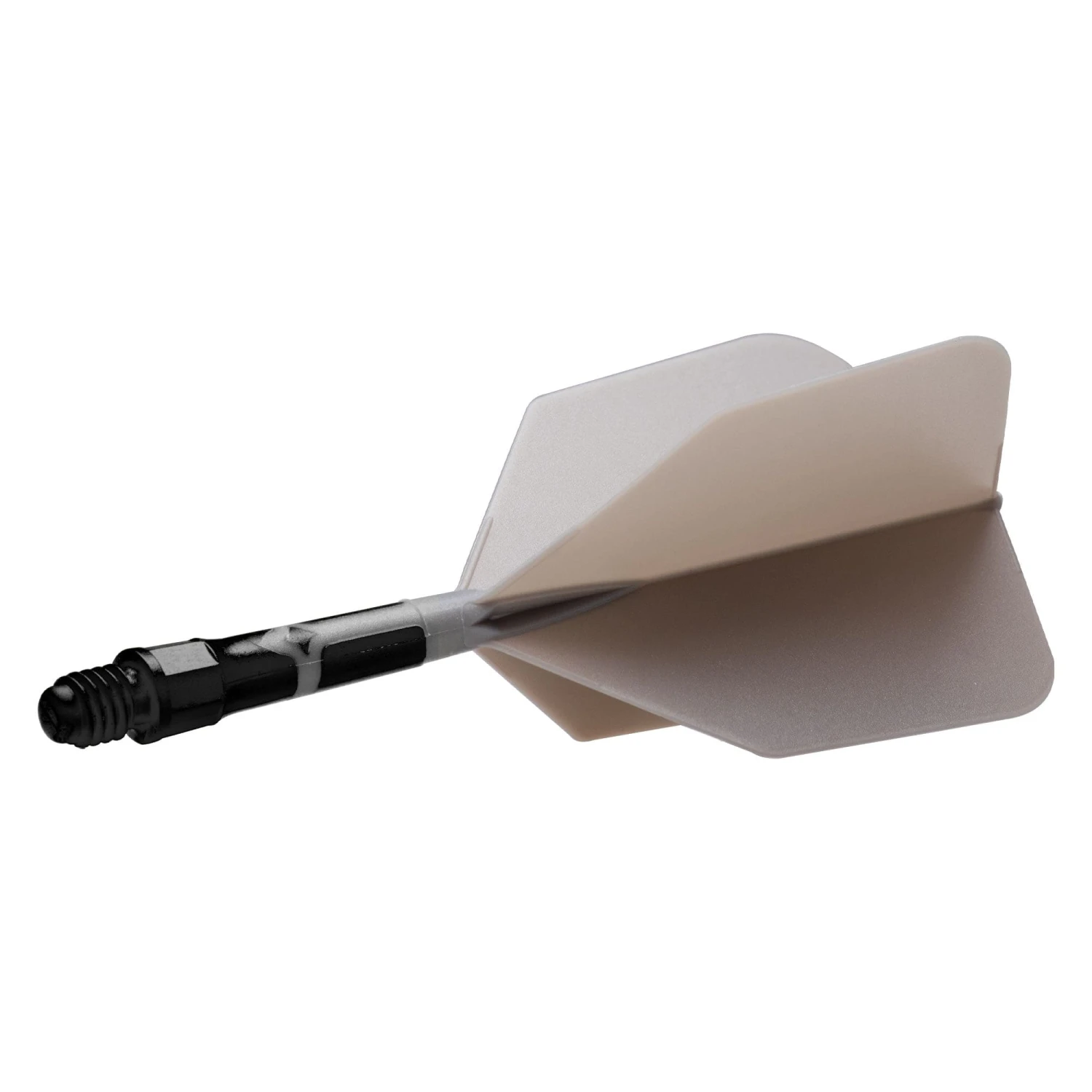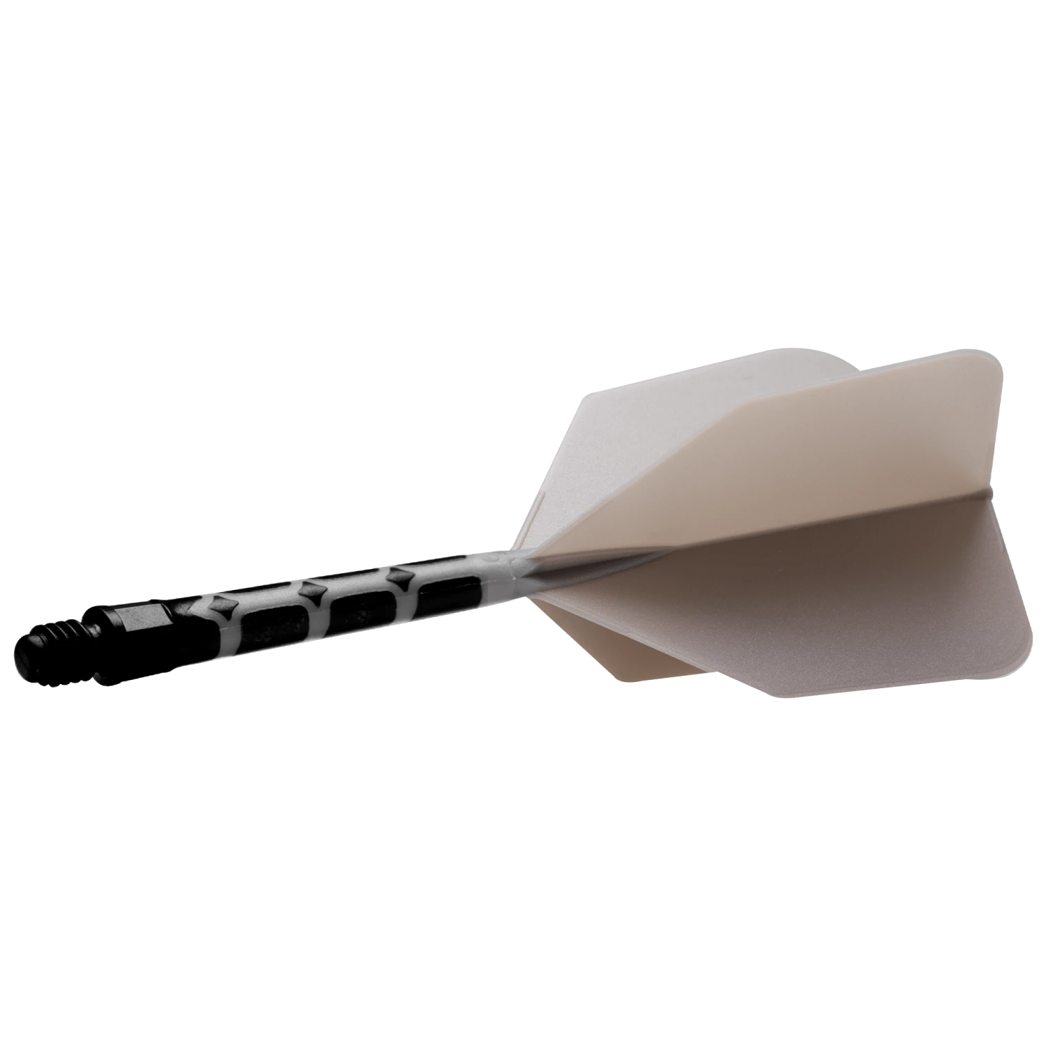 Cuesoul Rost T19 Integrated black dart shaft and big wing grey flights. This fully moulded system screws into the barrel, just as with a standard stem. The grey moulded flight features a reinforcing rib to help prevent Robin Hooding. The long black dart shaft is measured for what is visible once the dart is assembled. Shaft length: 33mm