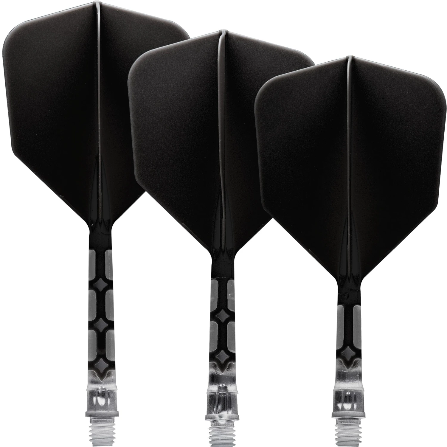 Cuesoul Rost T19 Integrated clear dart shaft and big wing black flights. This fully moulded system screws into the barrel, just as with a standard stem. The black moulded flight features a reinforcing rib to help prevent Robin Hooding. The medium clear dart shaft is measured for what is visible once the dart is assembled. Shaft length: 28mm