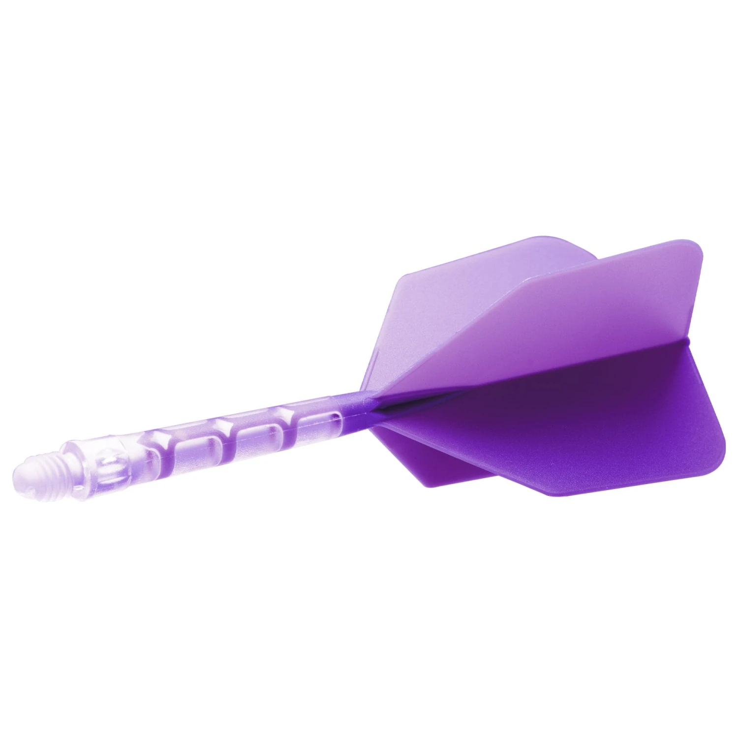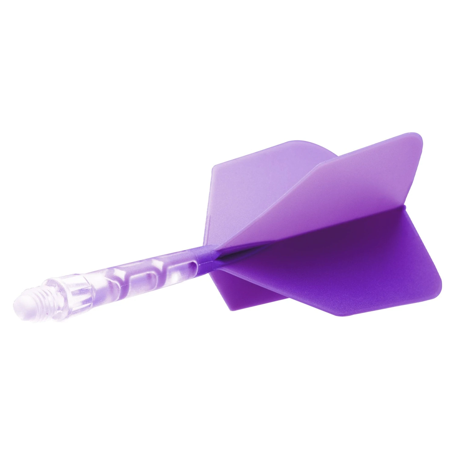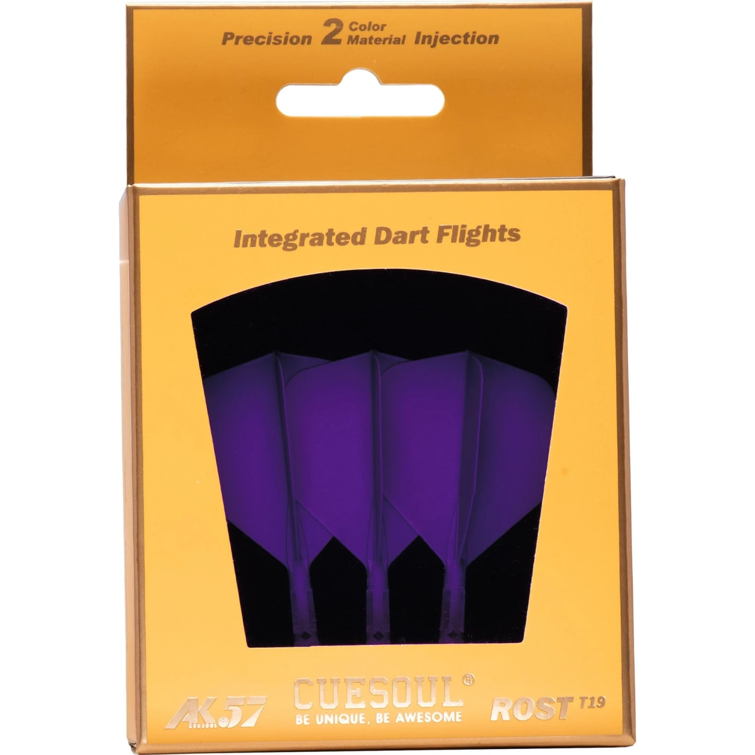 Cuesoul Rost T19 Integrated clear dart shaft and big wing purple flights. This fully moulded system screws into the barrel, just as with a standard stem. The purple moulded flight features a reinforcing rib to help prevent Robin Hooding. The medium clear dart shaft is measured for what is visible once the dart is assembled. Shaft length: 28mm