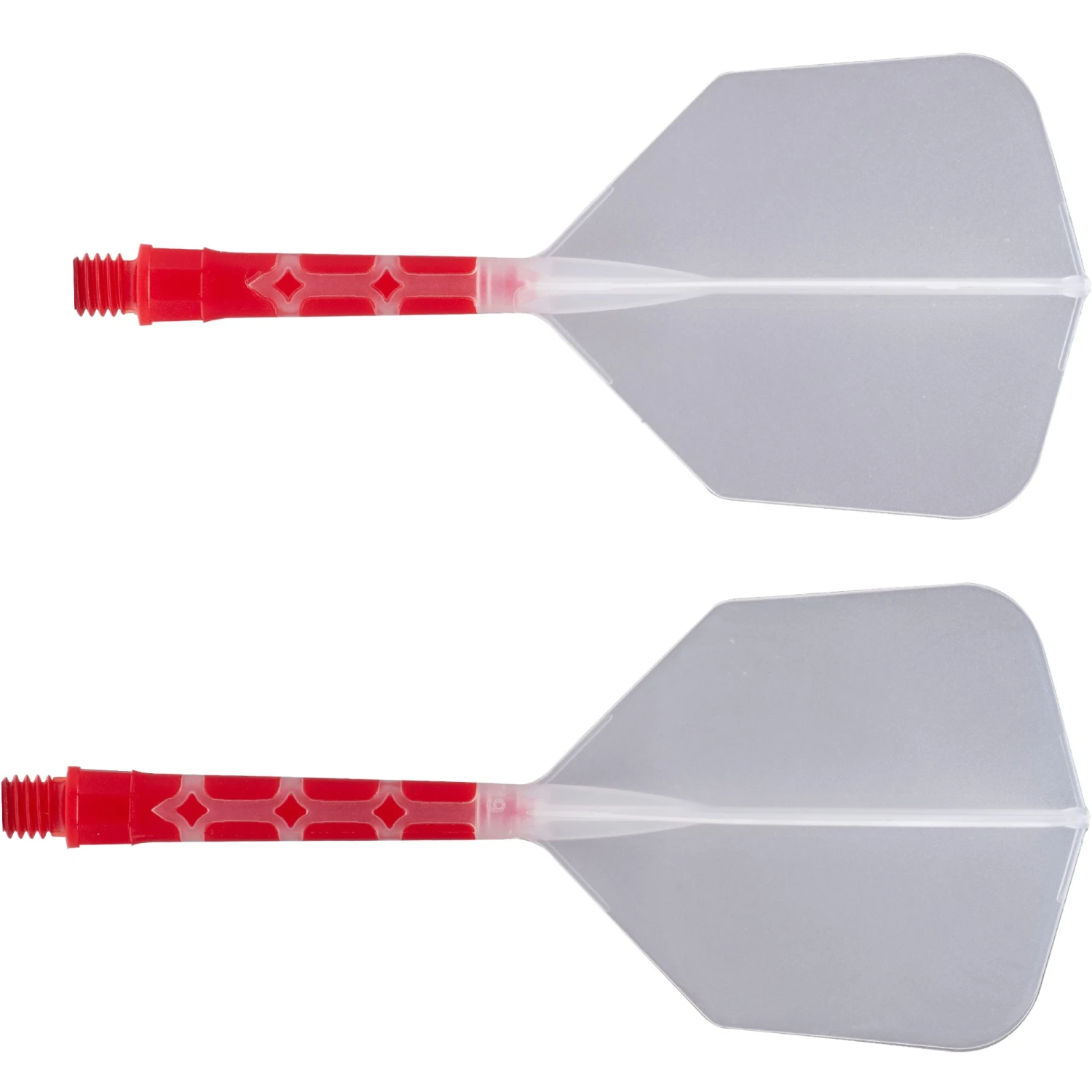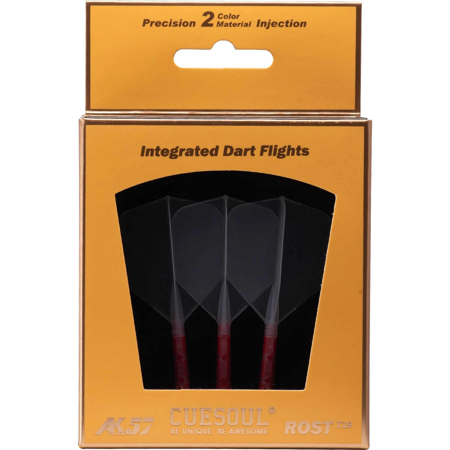 Cuesoul Rost T19 Integrated red dart shaft and big wing clear flights. This fully moulded system screws into the barrel, just as with a standard stem. The clear moulded flight features a reinforcing rib to help prevent Robin Hooding. The long red dart shaft is measured for what is visible once the dart is assembled. Shaft length: 33mm