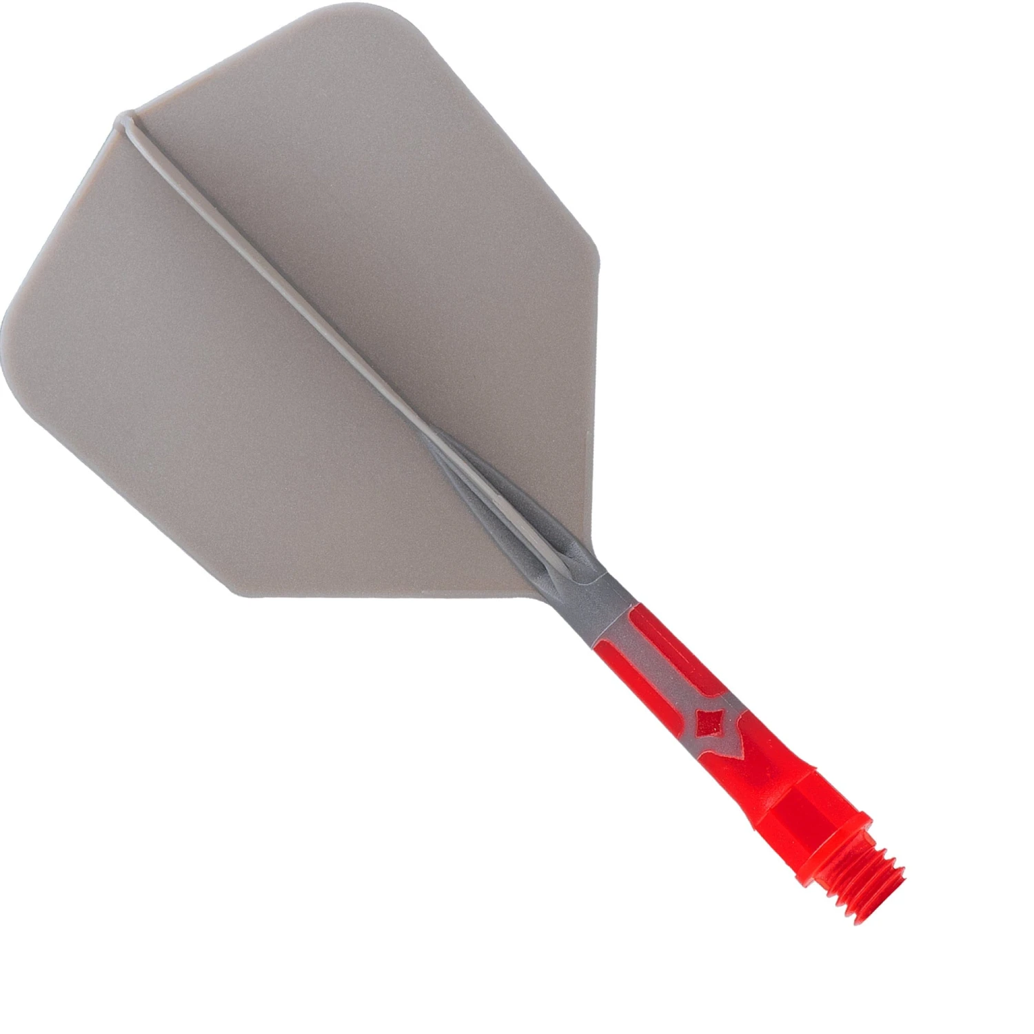 Cuesoul Rost T19 Integrated red dart shaft and big wing grey flights. This fully moulded system screws into the barrel, just as with a standard stem. The grey moulded flight features a reinforcing rib to help prevent Robin Hooding. The medium red dart shaft is measured for what is visible once the dart is assembled. Shaft length: 28mm