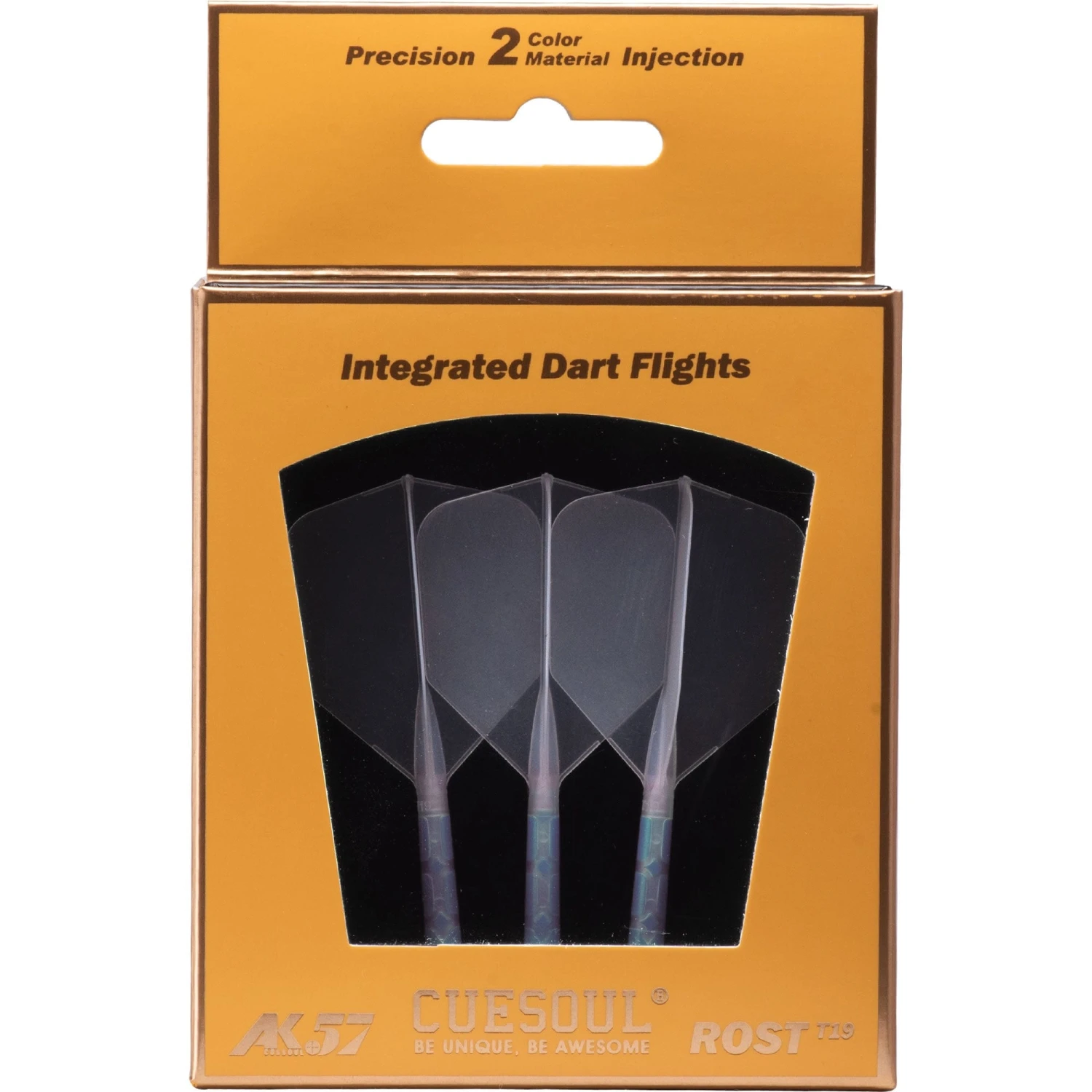 Cuesoul Rost T19 Integrated sky blue dart shaft and big wing clear flights. This fully moulded system screws into the barrel, just as with a standard stem. The clear moulded flight features a reinforcing rib to help prevent Robin Hooding. The medium sky blue dart shaft is measured for what is visible once the dart is assembled. Shaft length: 28mm