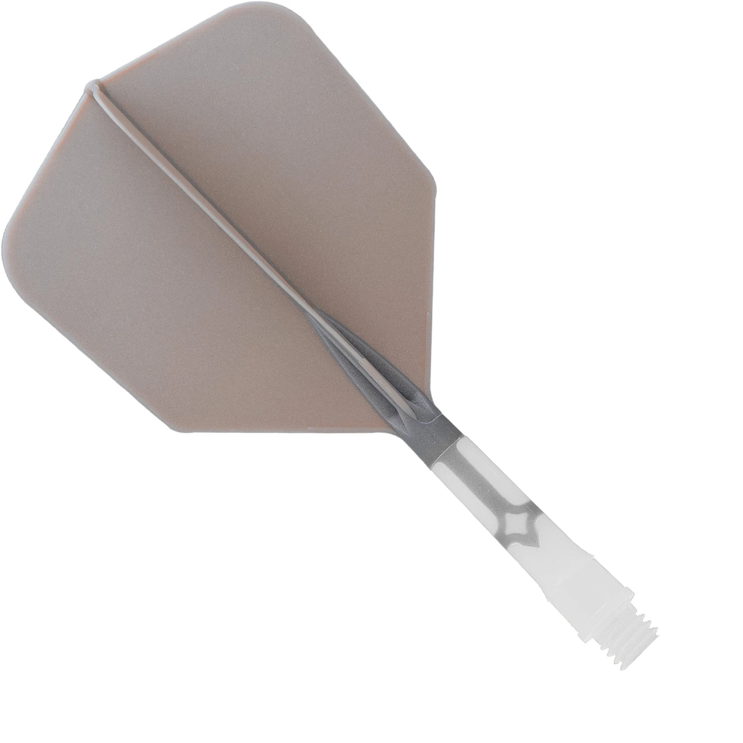 Cuesoul Rost T19 Integrated white dart shaft and big wing grey flights. This fully moulded system screws into the barrel, just as with a standard stem. The grey moulded flight features a reinforcing rib to help prevent Robin Hooding. The medium white dart shaft is measured for what is visible once the dart is assembled. Shaft length: 28mm