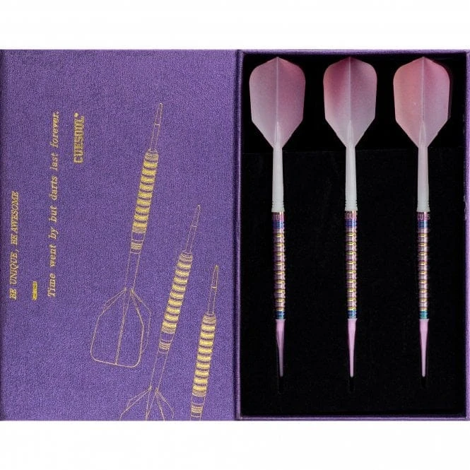 Cuesoul – Soft Tip Tungsten Darts – Pink Gem Stone – Oil Paint Finish – 22g. Contains 90% Tungsten Barrels, all in one Cuesoul ROST flights and shafts.