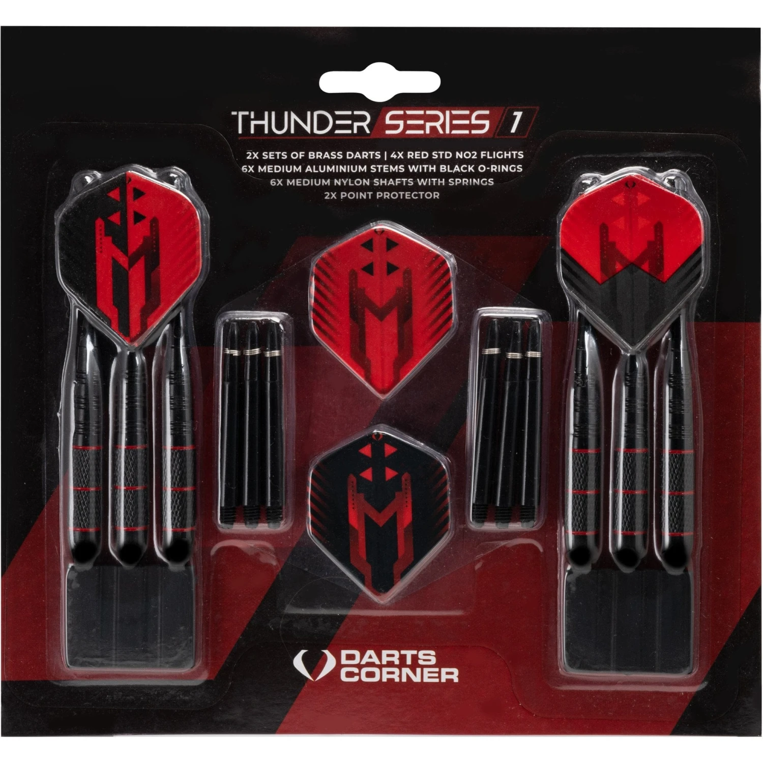 Darts Corner – Thunder Series 1 – Steel Tip Brass – 2 Sets Darts – M1 – Black & Red – 22g