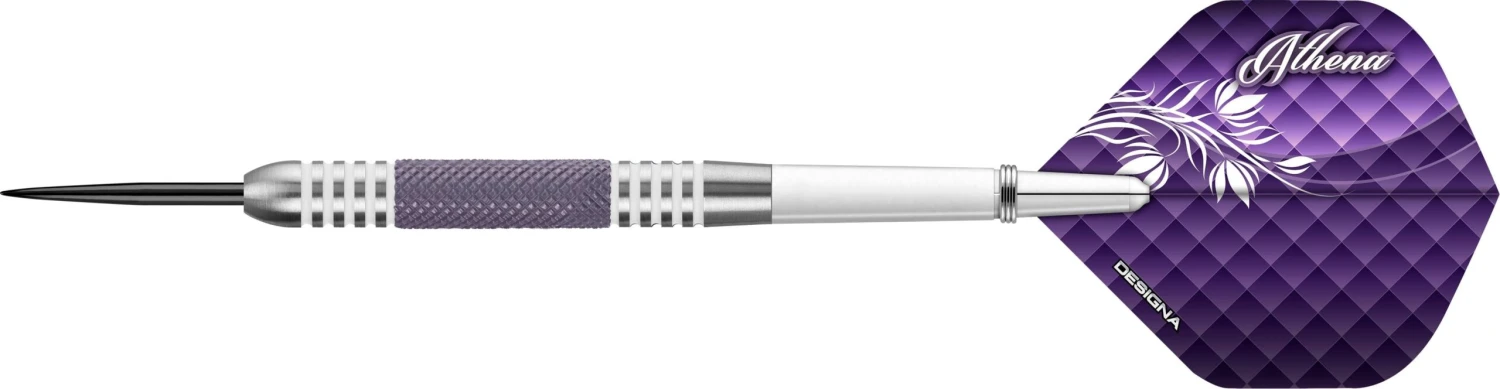 Designa Athena V2 Steel Tip Darts – 90% Tungsten. Quality 90% Tungsten Darts. Includes: 2 Sets of Designa Flights, 1 Set of Nylon Shafts with rings, Point Protector.