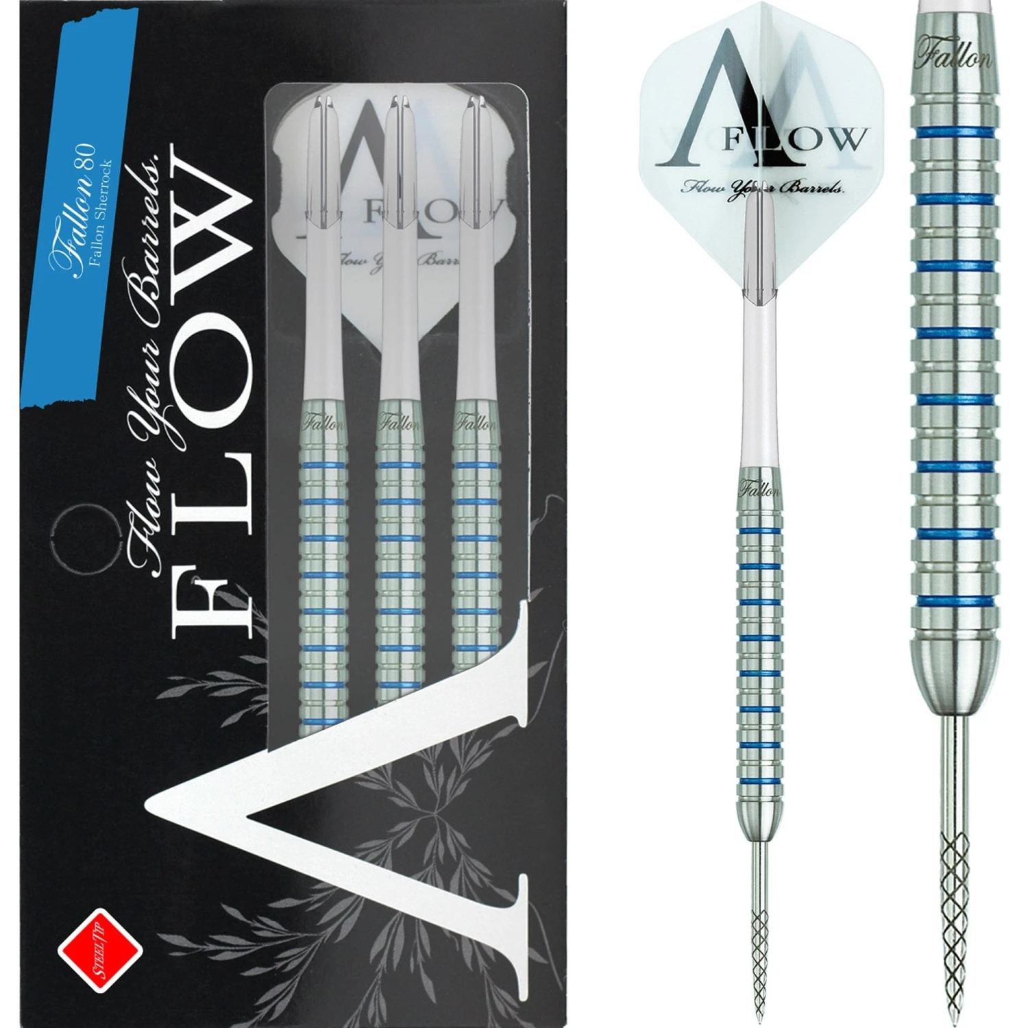 Dynasty Fallon 80 Steel Tip Darts – Fallon Sherrock – Blue Label. Features: 80% Tungsten Barrels.