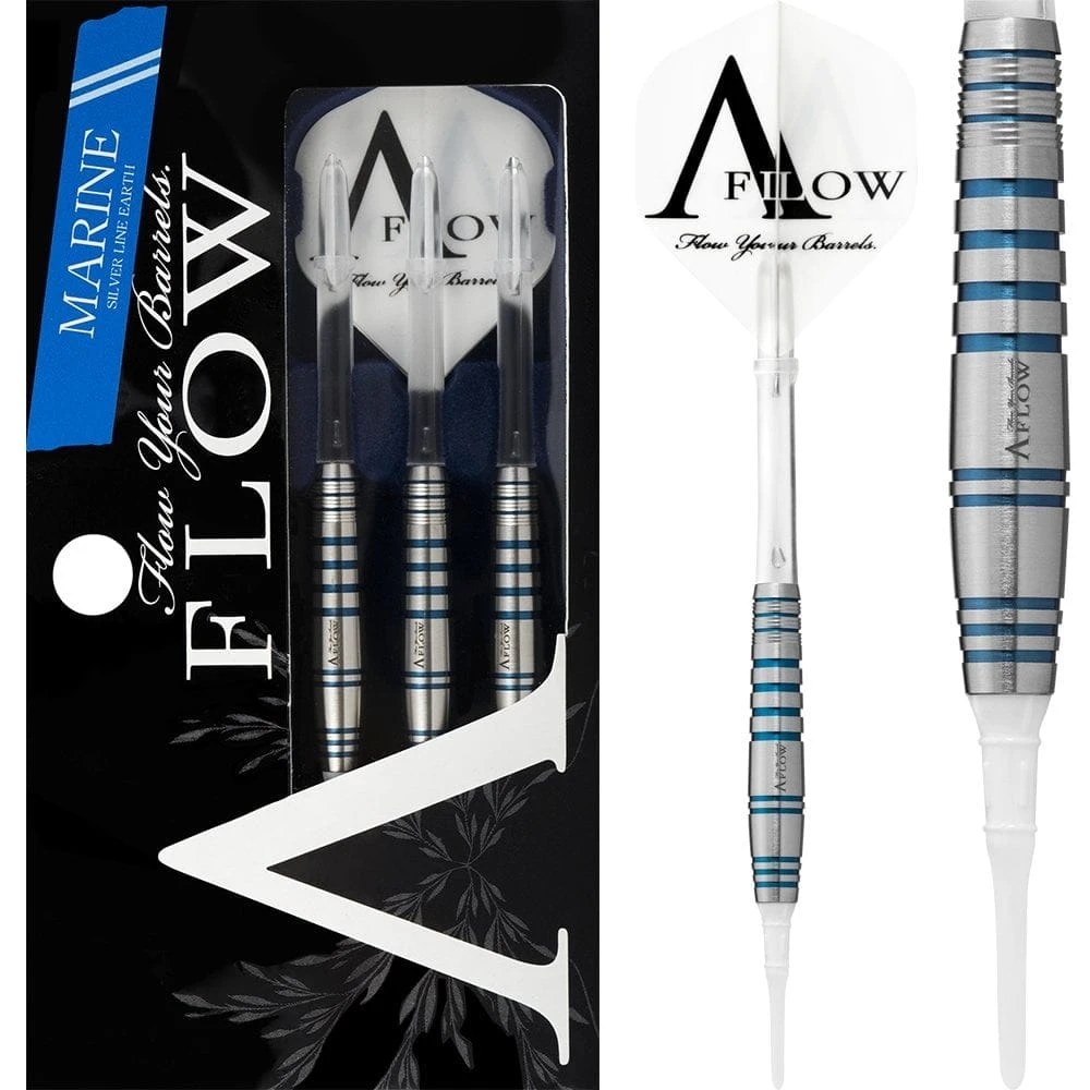 Dynasty Silver Line Earth A Flow Soft Tip Tungsten Darts – Marine. Features: 80% Tungsten Barrels, Dynasty Flights and Shafts. Flights and Shafts may vary from picture.