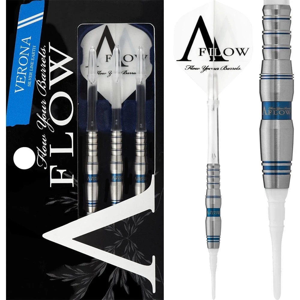 Dynasty Silver Line Earth A Flow Soft Tip Tungsten Darts – Verona. Features: 80% Tungsten Barrels, Dynasty Flights and Shafts. Flights and Shafts may vary from picture.