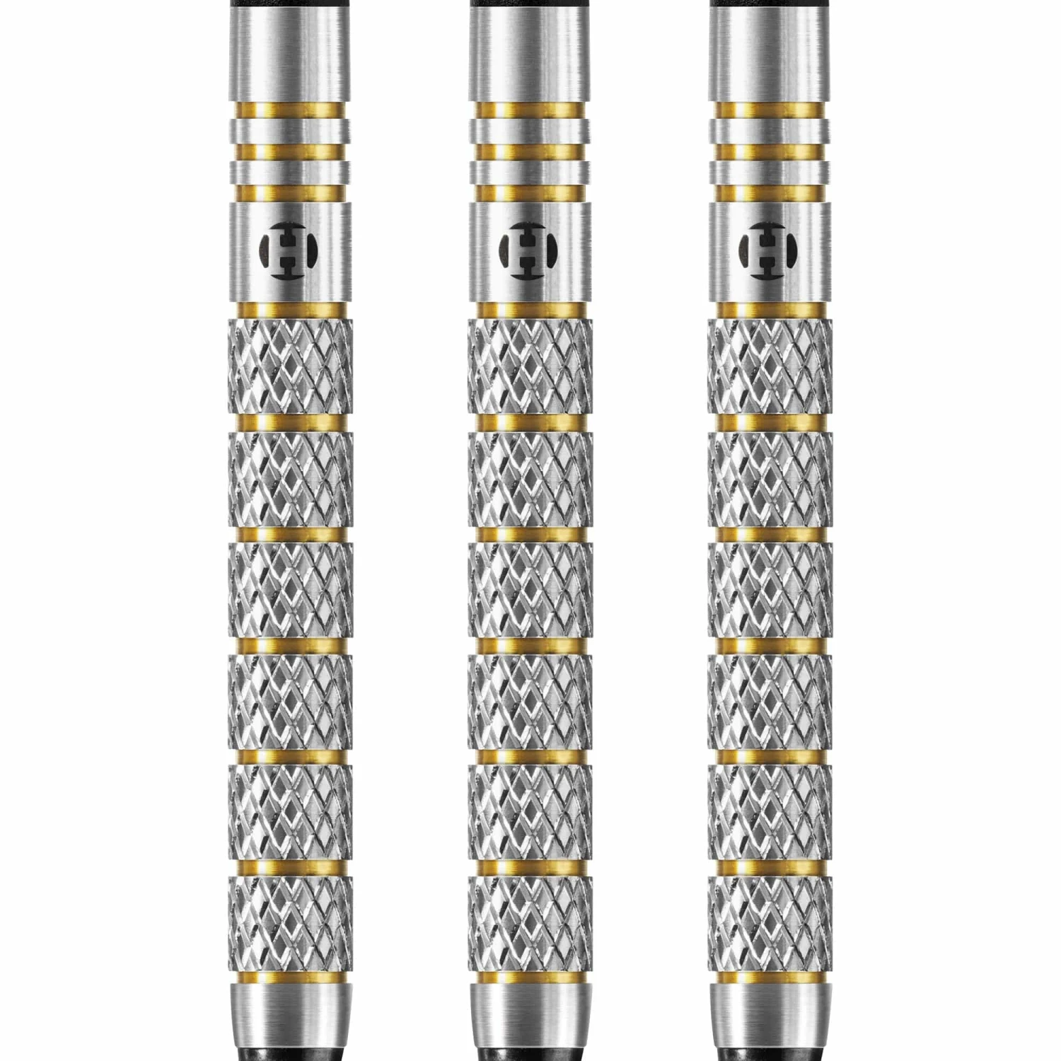 Harrows Boxer Darts – Soft Tip – 90% – Anniversary Edition – Parallel – 18g. To celebrate Harrows 50th Anniversary, these special edition darts have been brought back into their collection. Always a popular choice, they have been given a welcome upgrade to modernise the look with a golden titanium coating. Now it is a truly stunning dart. Each comes with the Anniversary Edition of dart flights and Harrows Supergrip Carbon shafts.