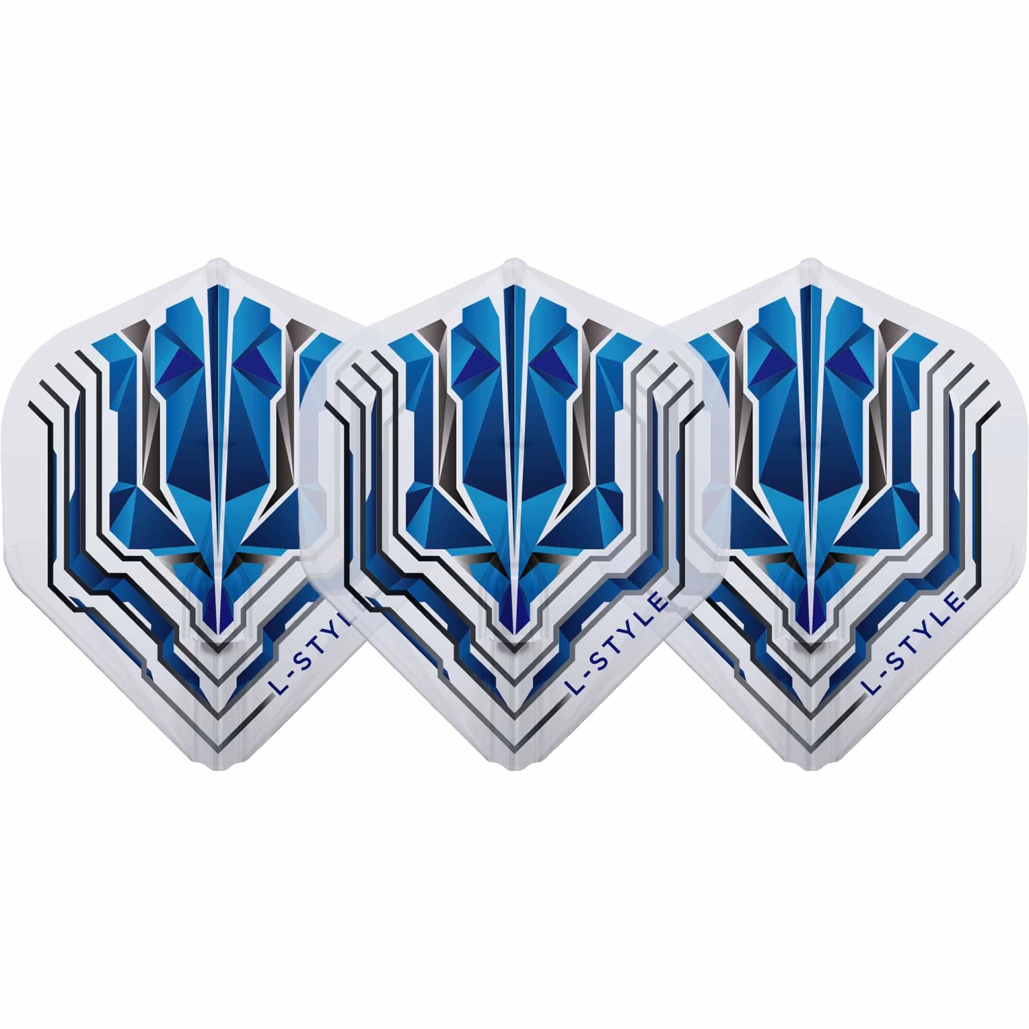 L-Style – EZ L-Flights – Integrated Champagne Ring – L1EZ Standard – Origin Series – Clear – Blue. Each pack contains 3 flights.