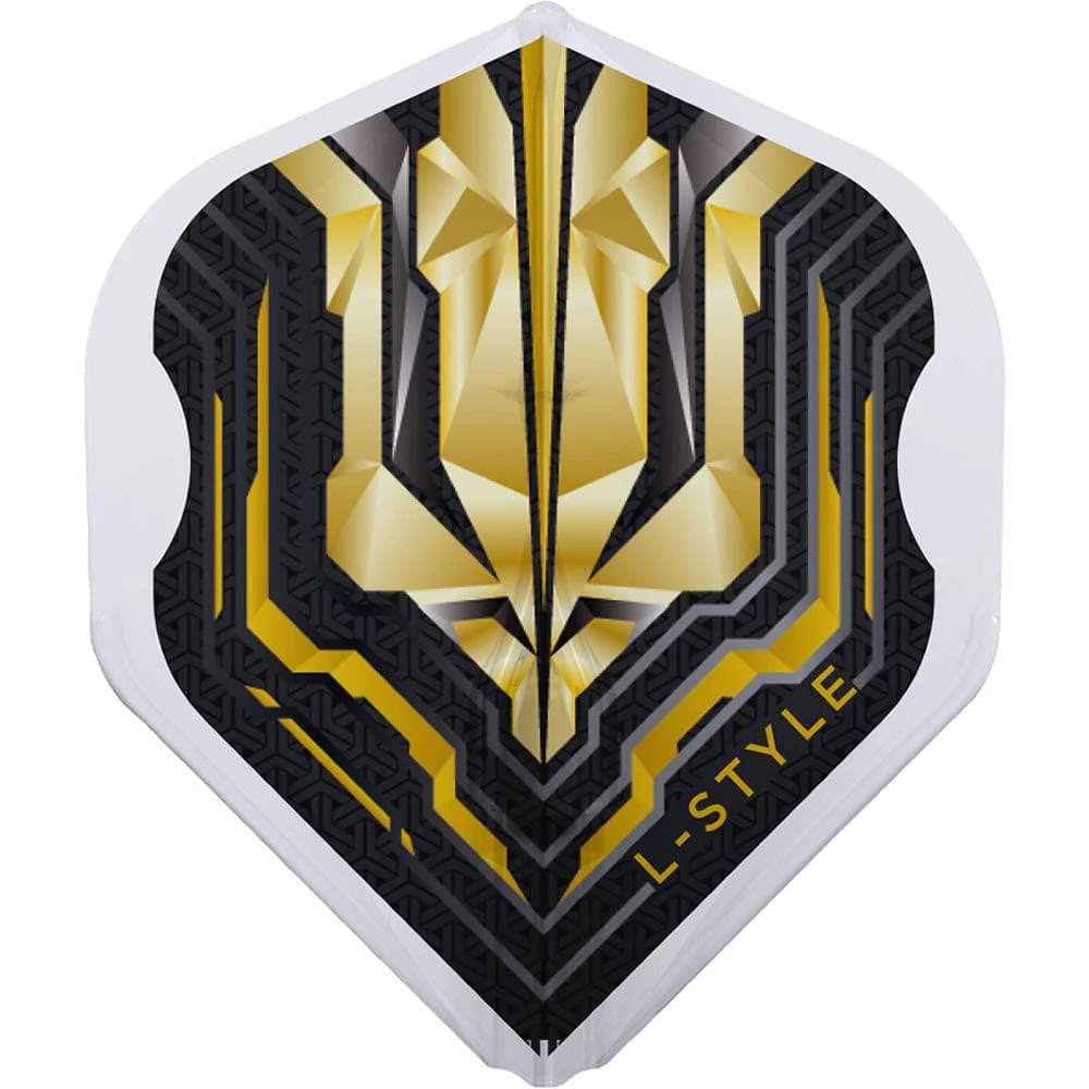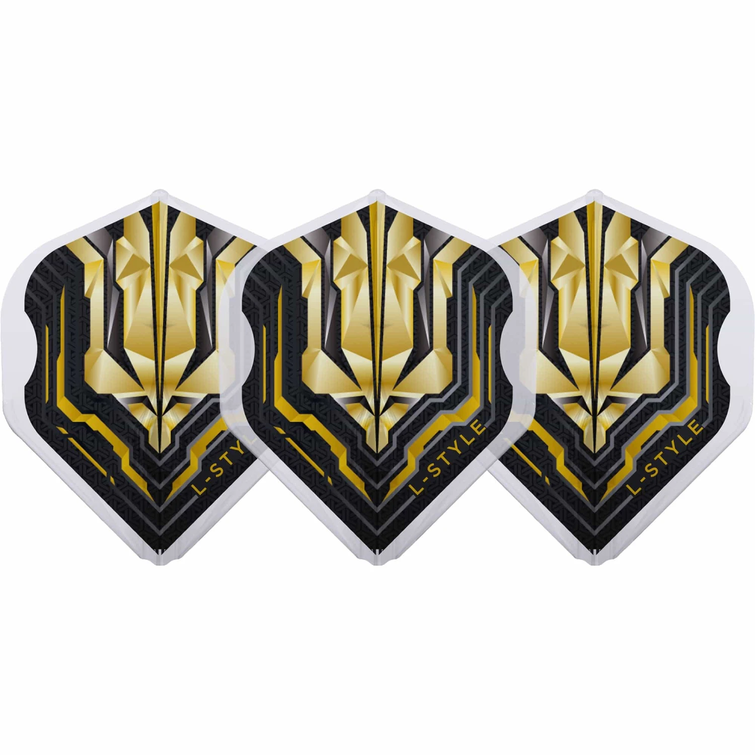 L-Style – EZ L-Flights – Integrated Champagne Ring – L1EZ Standard – Origin Series – Clear – Gold. Each pack contains 3 flights.