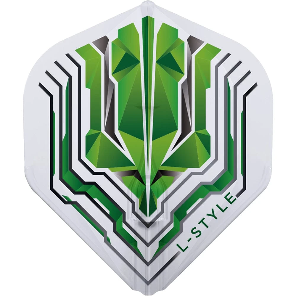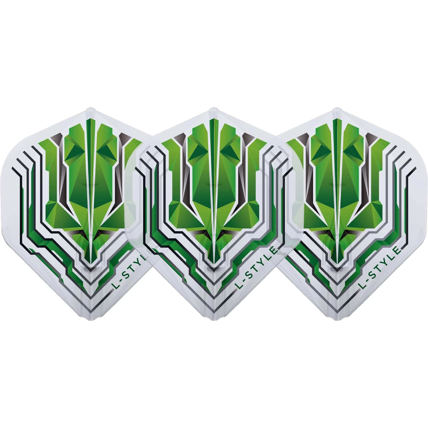 L-Style – EZ L-Flights – Integrated Champagne Ring – L1EZ Standard – Origin Series – Clear – Green. Each pack contains 3 flights.