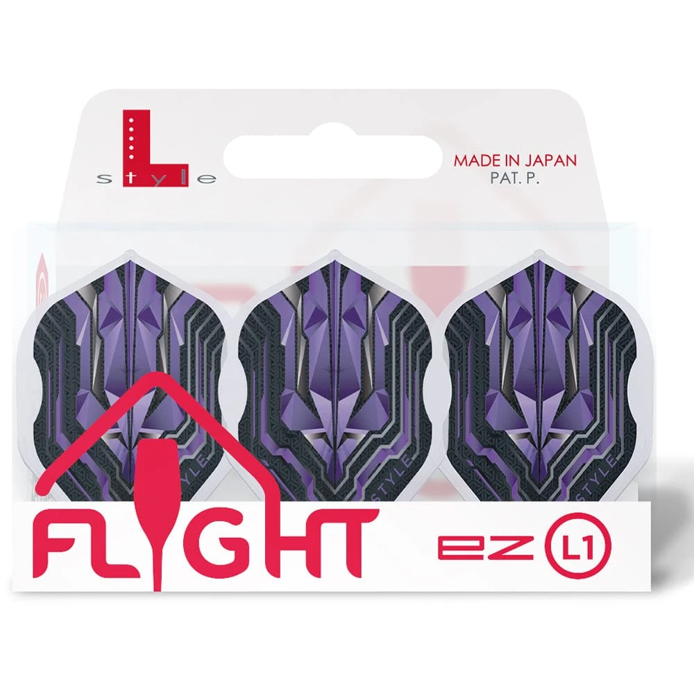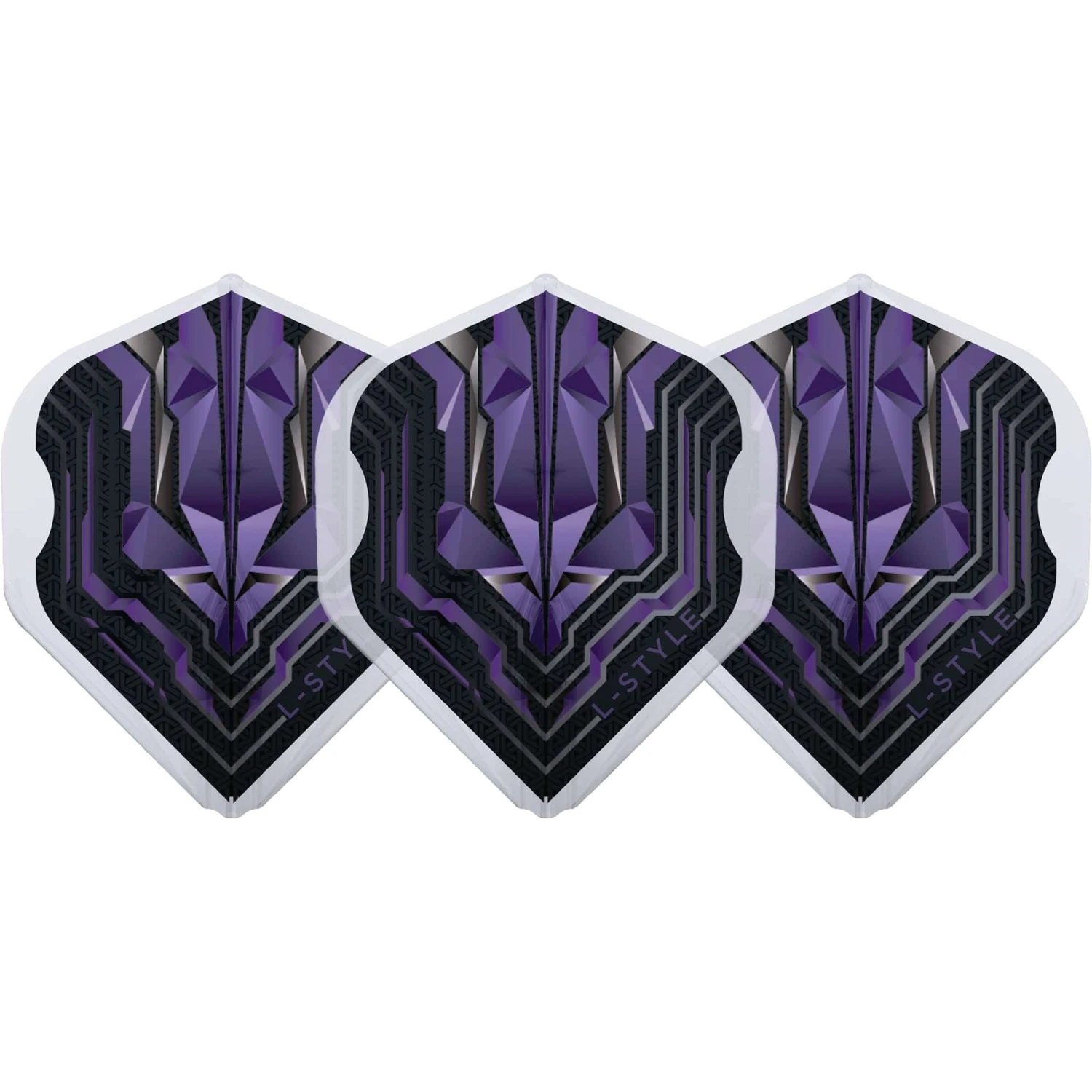L-Style – EZ L-Flights – Integrated Champagne Ring – L1EZ Standard – Origin Series – Clear – Purple. Each pack contains 3 flights.