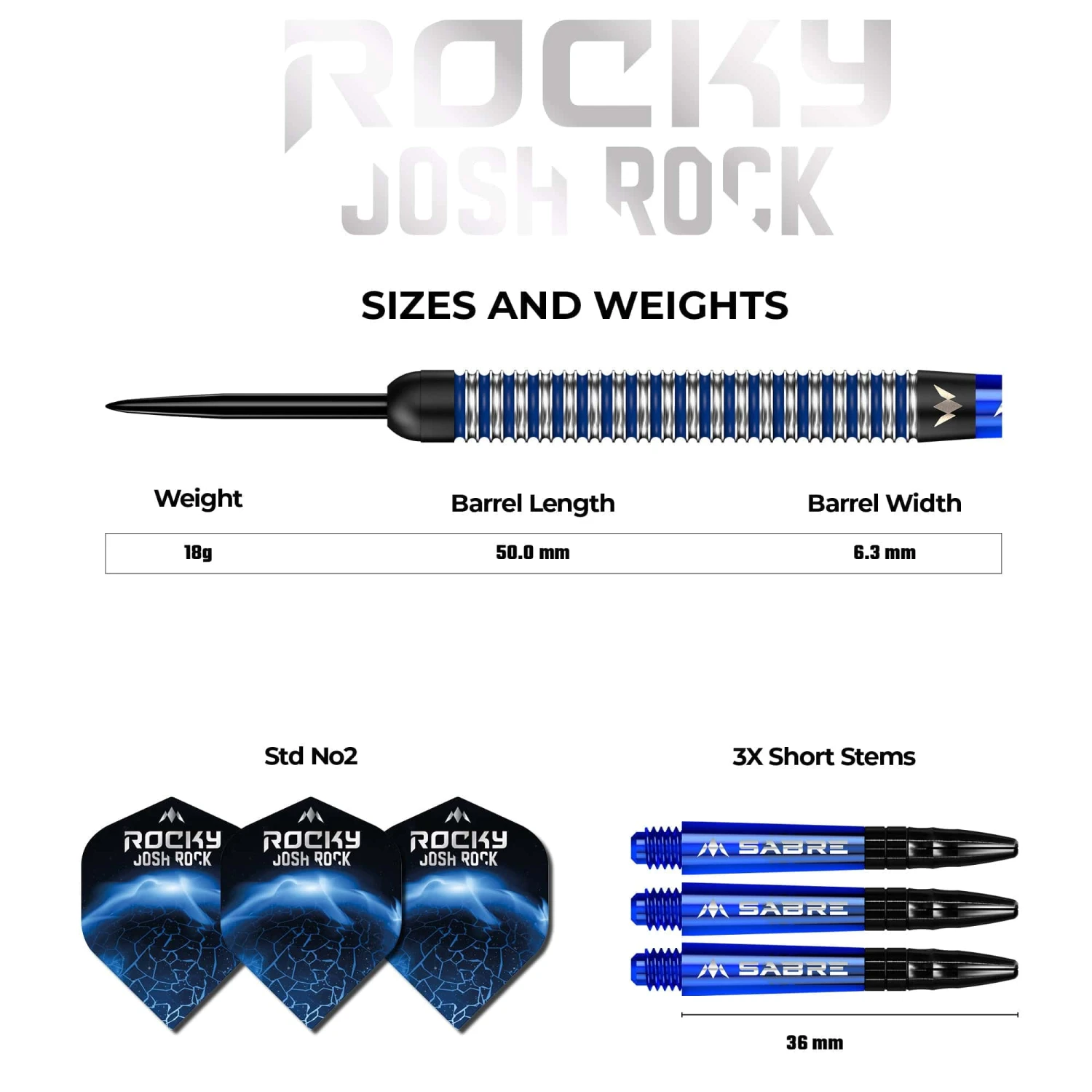 Mission Josh Rock Steel Tip Tungsten Darts – 95% Tungsten. Features: 95% Tungsten Barrels, PVD Coating, 1 Set of Mission Flights, 1 Set of Mission Shafts with S-Lock rings, Point Protector. Just like a meteor blasting its way through space, will these Josh Rock darts help you demolish the competition? Rocky has been like a fireball, exploding through his matches using his new Mission Josh Rock darts, which feature a straight barrel design in electric blue and silver, with a bull nose in black. The varying ringed-grip design runs down the full length of the barrel which has been created by re-machining to highlight silver and electric blue painted rings, which provide a sharp contrast to the Black PVD coating on the nose and rear of the barrel. The barrel leads to a Sabre shaft in transparent electric blue with black aluminium top which tightly grips the Rocky Josh Rock signature flight. The dart is completed with a black point and the Mission logo is laser-etched into the rear of the barrel. The Mission Josh Rock darts are striking and out of this world! Grip Level: 7/10 Mission Josh Rock Darts – Steel Tip – The Rock – Black & Blue – 26g
