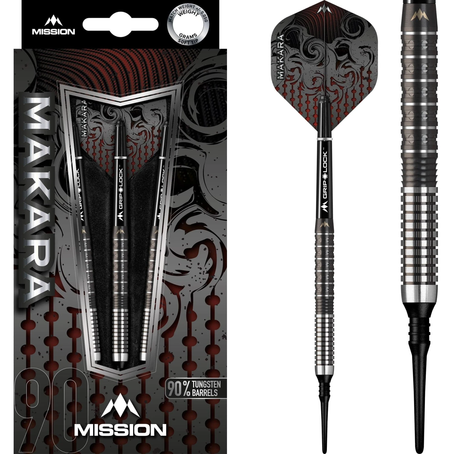 Mission Makara Soft Tip Tungsten Darts – 90% Tungsten. Features: 90% Tungsten Barrels, Graphite PVD Colours – 1 Set of Mission Flights, 1 Set of Mission Shafts with S-Lock rings, Point Protector. Mission Makara Darts – Soft Tip – M1 – Graphite PVD Black – 21g-D9647