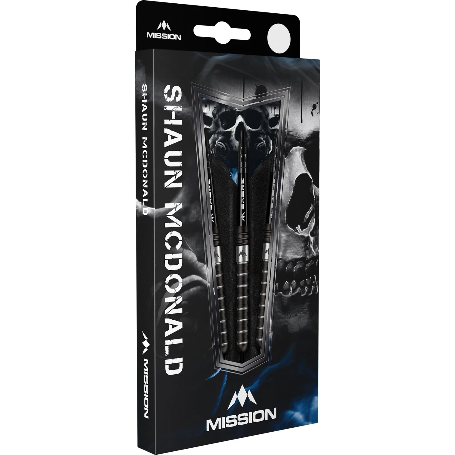Mission Shaun McDonald Darts – Steel Tip – 95% – Black PVD – 25g. Features: 95% Tungsten Barrels, PVD Coating, 1 Set of Mission Flights, 1 Set of Mission Shafts, Point Protector. Mission Shaun McDonald Darts – Steel Tip – 95% – Black PVD – 25g darts set