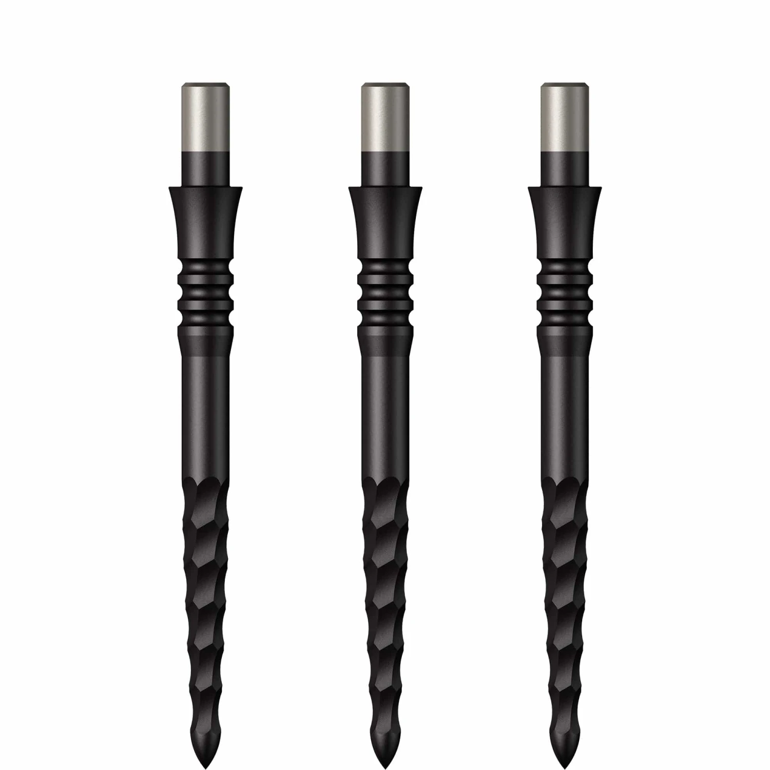 Mission Sniper – Lunar FS – Steel Tip Precision Replacement Points. Each pack contains 3 spare points. Mission Sniper Points – Steel Tip – Precision Spare Points – Lunar FS – Black – 32mm – machined points, great grip, additional finger grip, easy to fit.