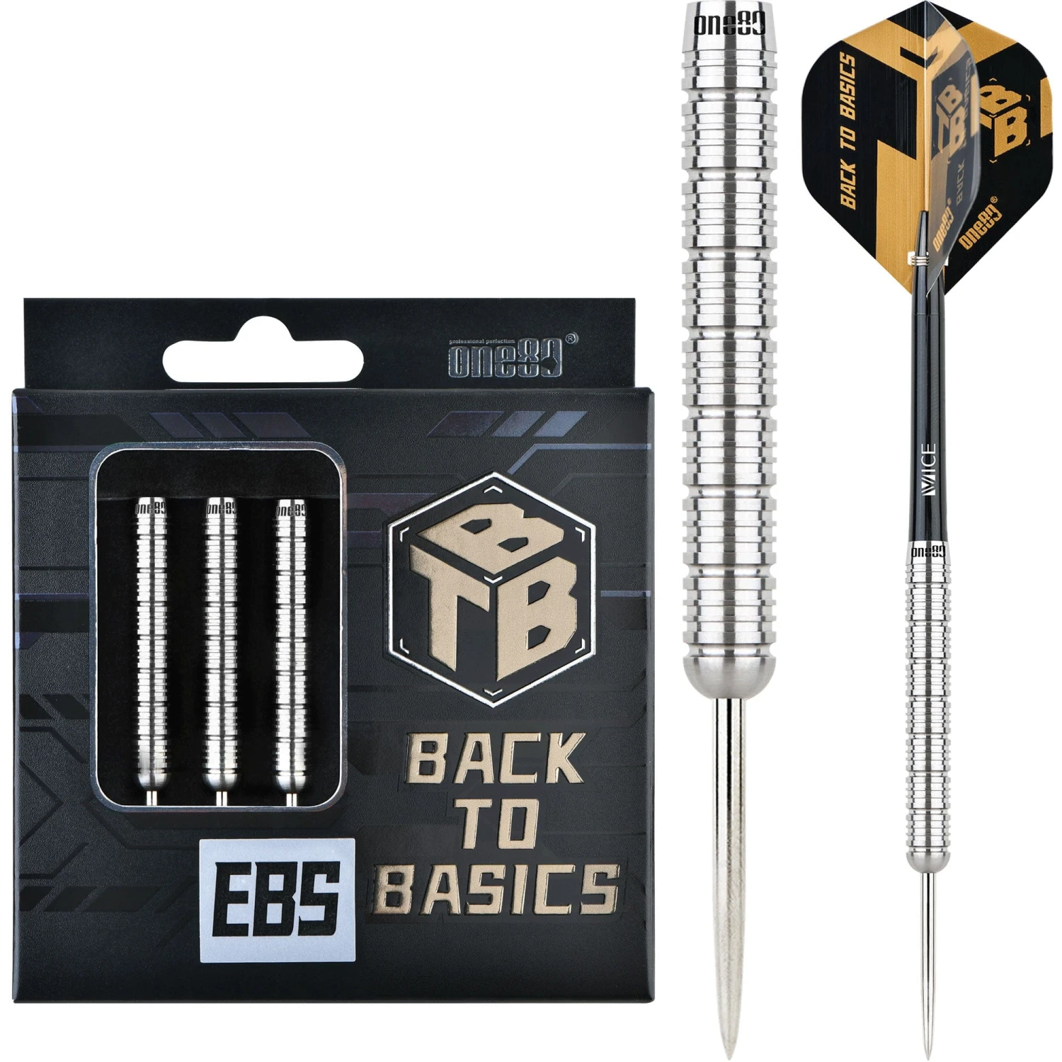 One80 Back To Basic Darts – Steel Tip – EBS – Natural – Ringed – 22g. Features: HD (High Density) Tungsten, Matched Weighted, Set of Nylon Shafts, Set of One80 Flights