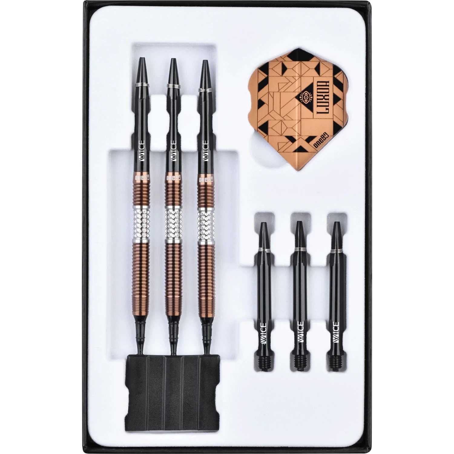 One80 Luxor Beta VHD Darts – Soft Tip Tungsten. Features: 90% Tungsten, Set of One80 Vice Shafts, Set of One80 Flights.