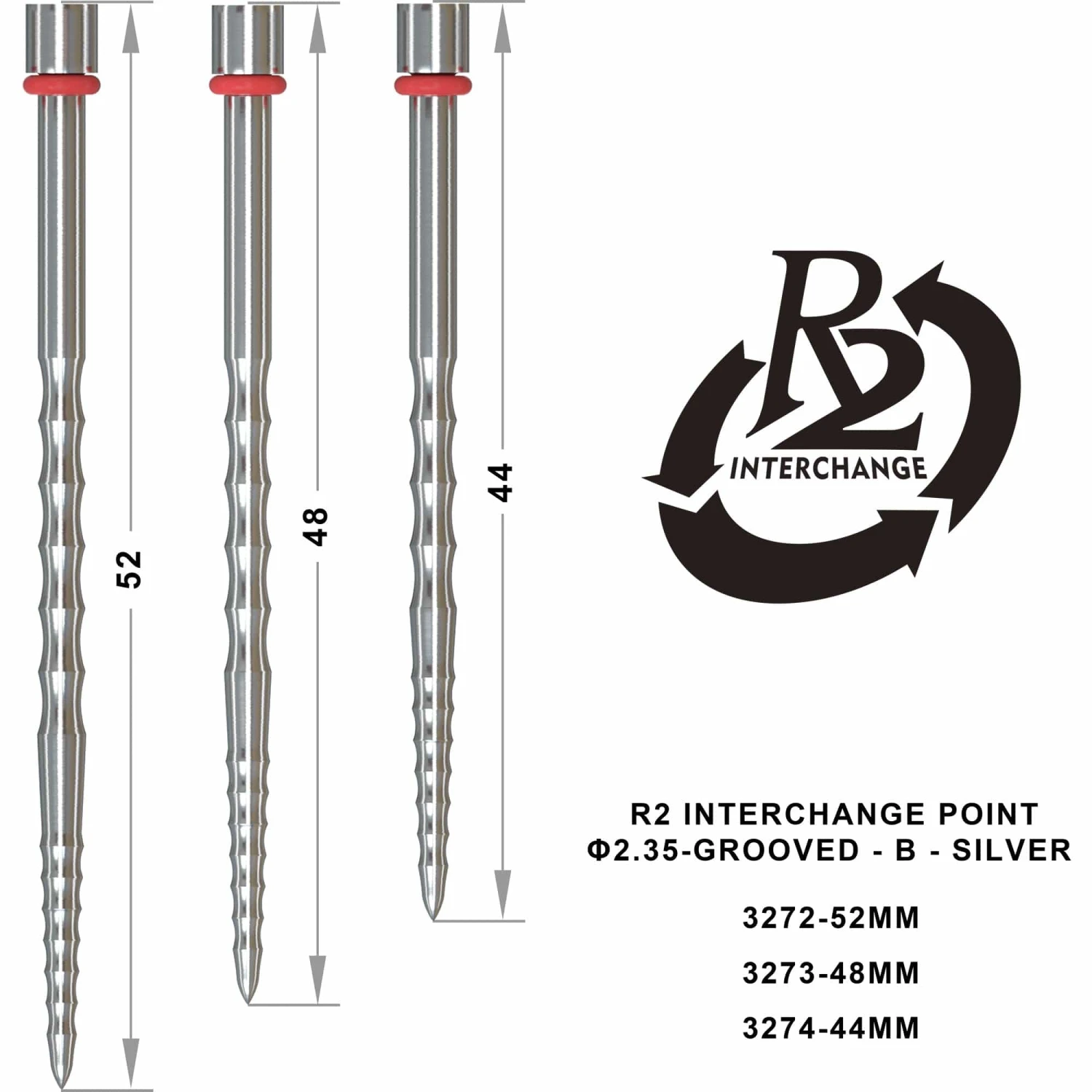 One80 R2 Interchange Points (2.35mm) – 48mm – Grooved – B – Silver. Each pack contains 3 points for use with R2 Darts,