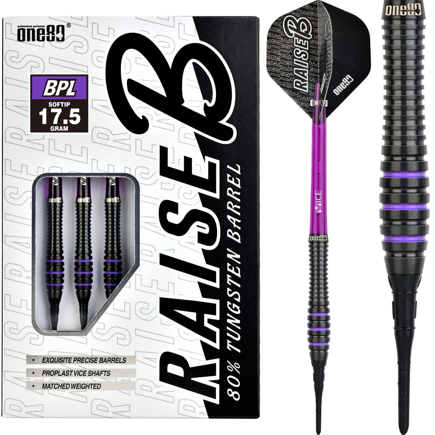 One80 Raise B Darts – Soft Tip – Black – Purple Rings