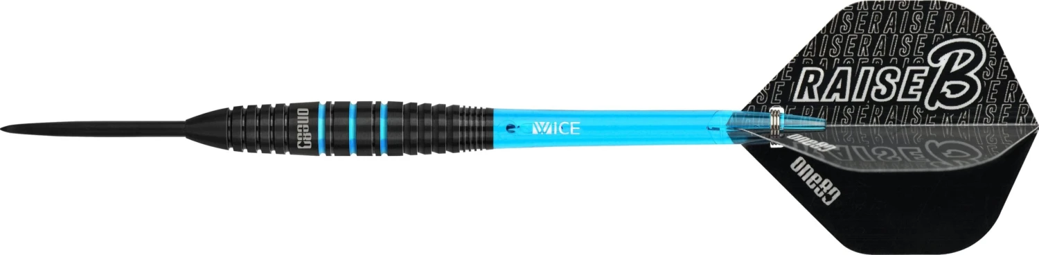 One80 Raise B Darts – Steel Tip – Black – Aqua Blue Rings