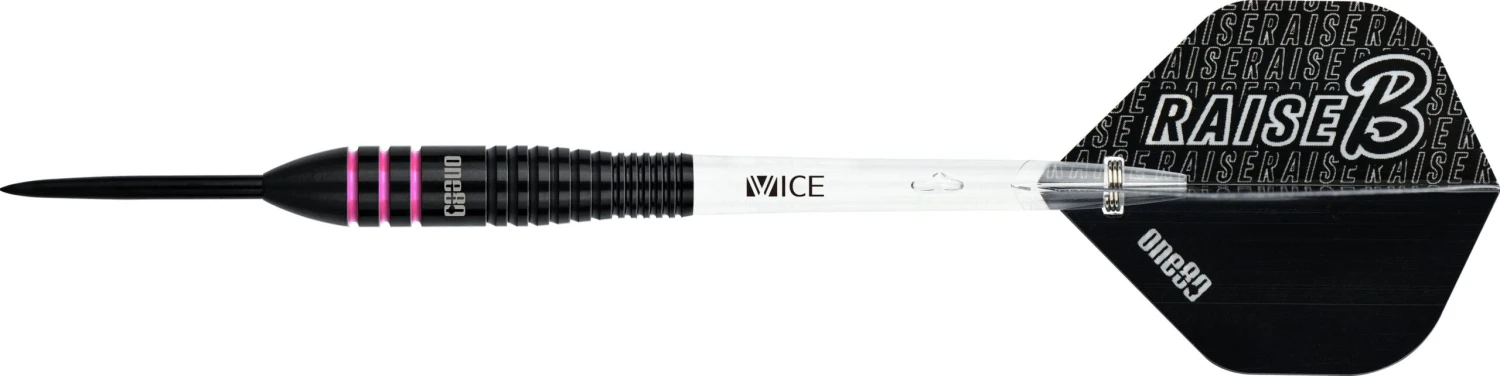 One80 Raise B Steel Tip Darts – Black with coloured rings. One80 Raise B Darts – Steel Tip – Black – Pink Rings