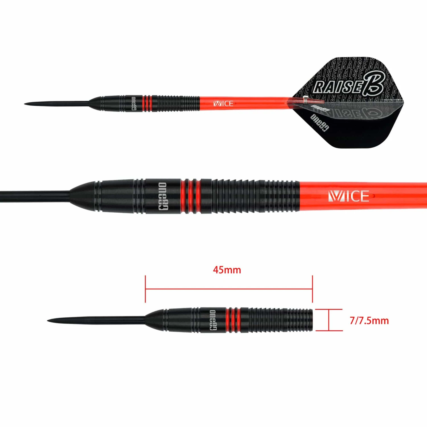 One80 Raise B Steel Tip Darts – Black with coloured rings. One80 Raise B Darts – Steel Tip – Black – Red Rings