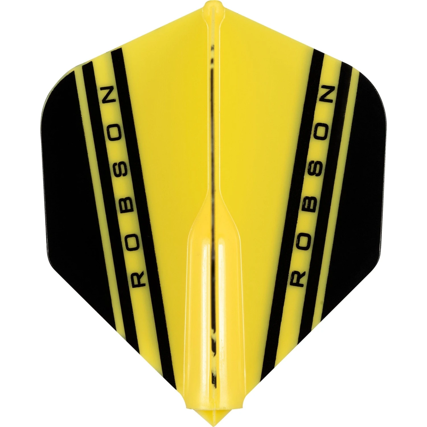 Robson Plus Standard Shape Dart Flights with V design. Made from a moulded plastic, these yellow flights simply push onto your normal shaft to give you a solid professional setup. As the flights do not have a specialist fitting, these yellow flights can be used on most nylon and aluminium shafts. Each pack is provided as one set of 3 flights.