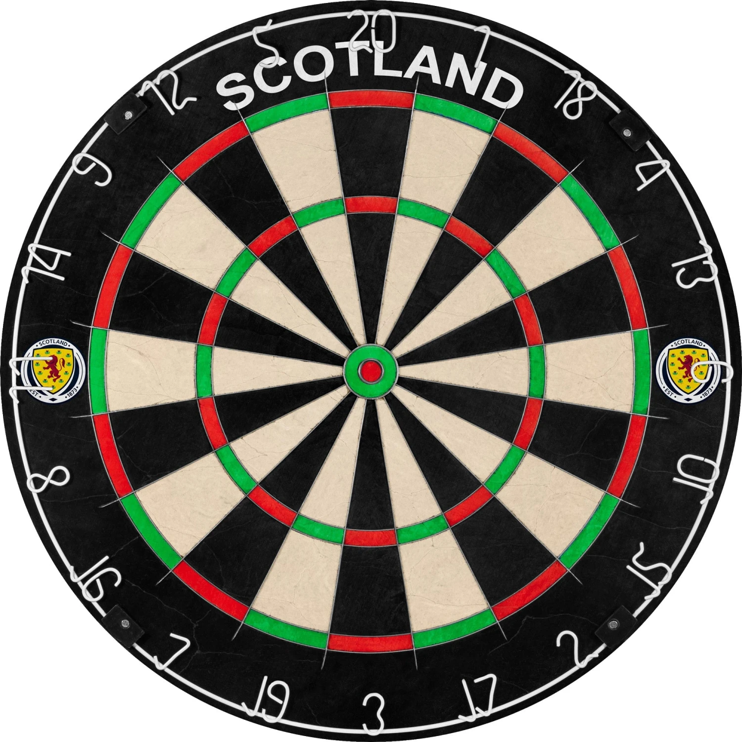 Scotland Football Professional Dartboard is a competition standard top-quality dartboard with an ultra-thin wire construction. The sharp angle of the ultra-thin wires enables darts to glance over them and into the scoring areas, resulting in less bounce outs and damage to the darts. This Scotland dartboard is manufactured from high-quality African sisal and features a staple-free construction and vibrant non-fade colours. Scotland Football Dartboard – Professional Level – Official Licensed – Crest