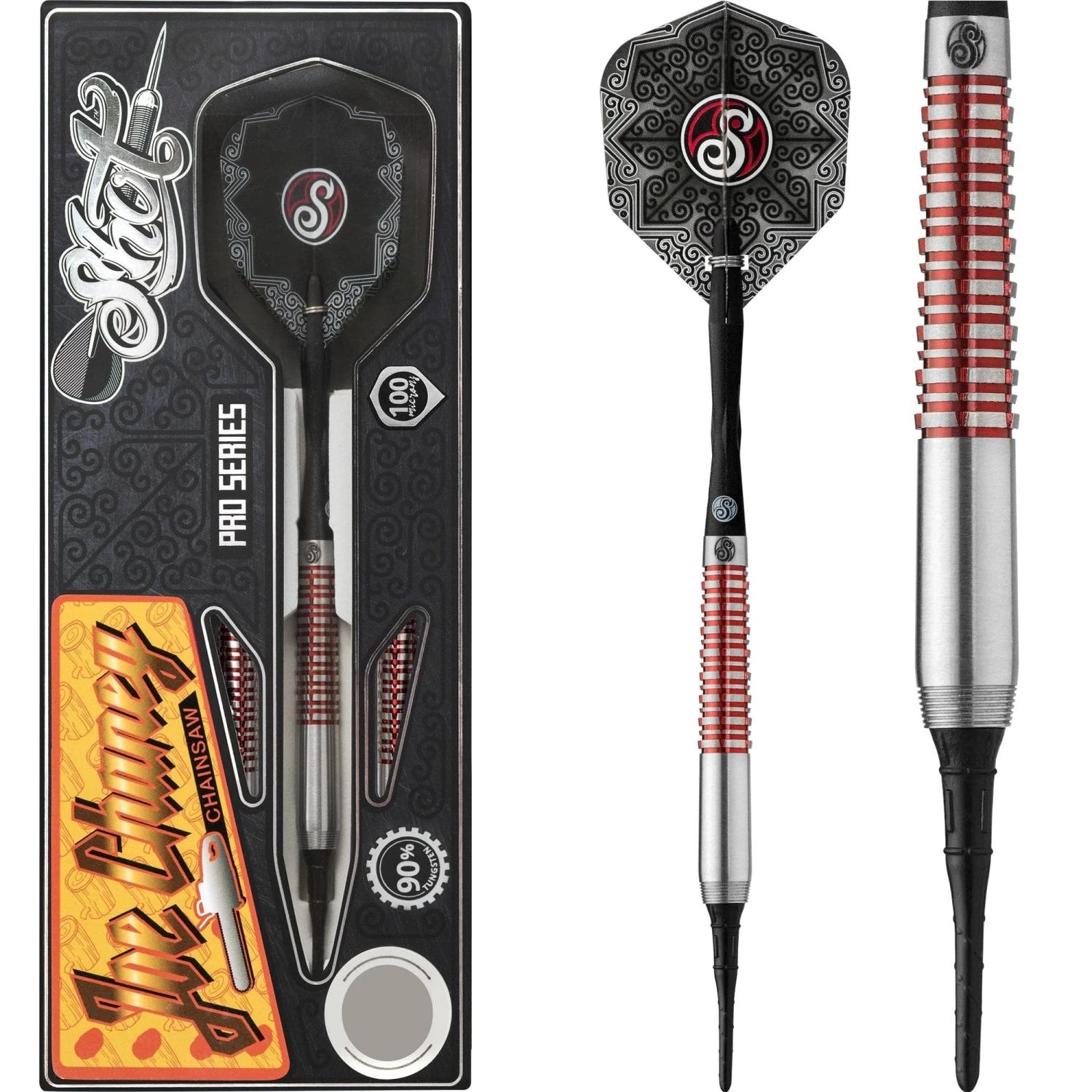 Shot Pro Series Joe Chaney – Soft Tip Tungsten Darts. Features: 90 Percent Tungsten Barrels, Shot Shafts, Shot Flights.