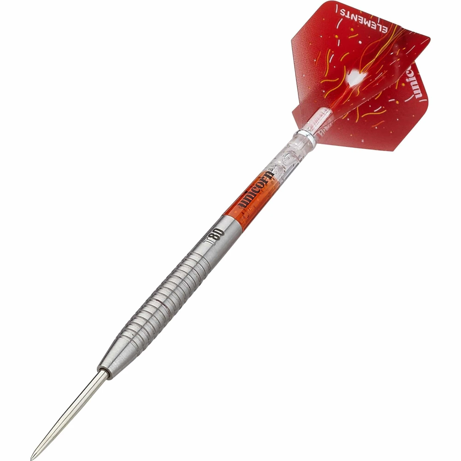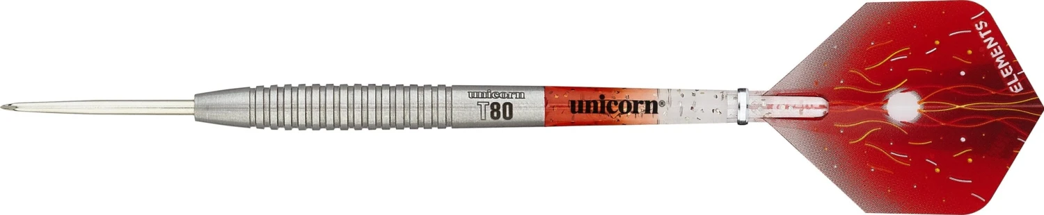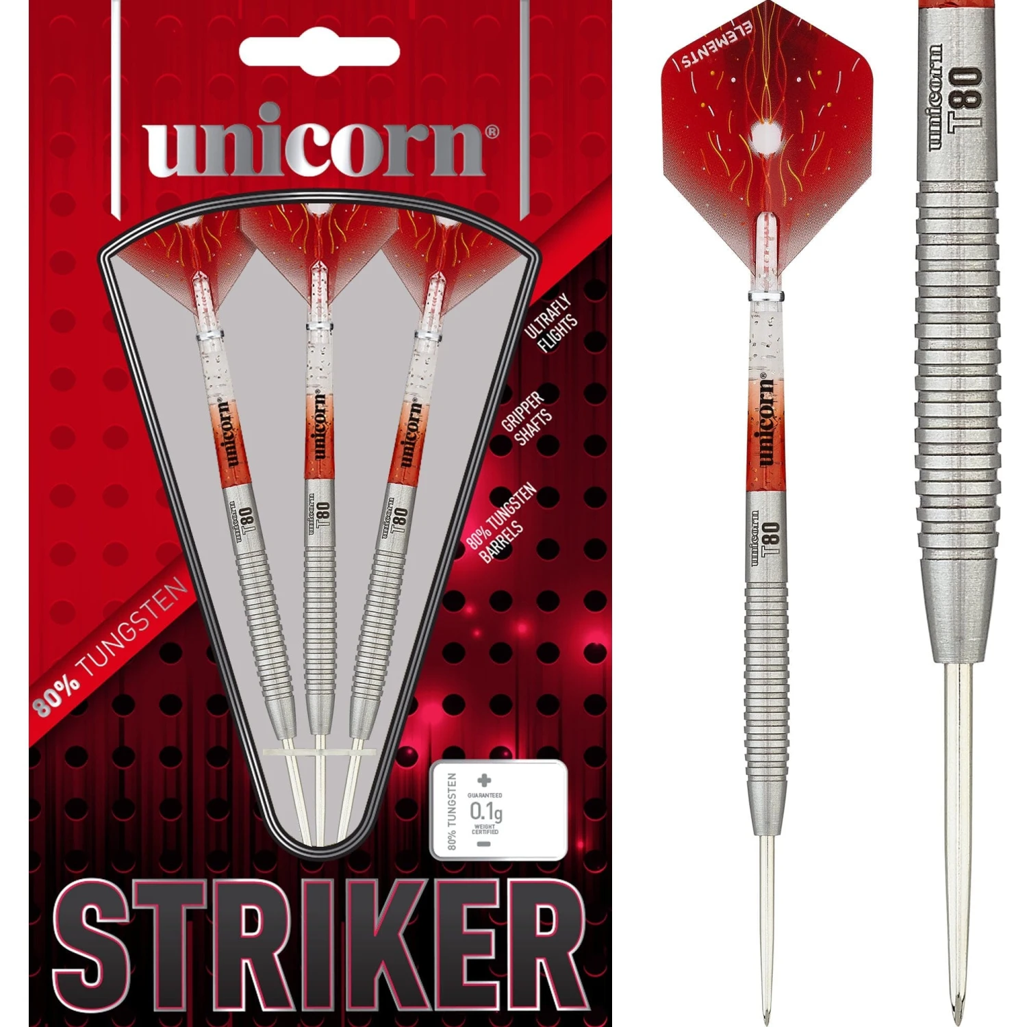 Unicorn Striker T80 Core XL 80% Steel Tip Tungsten Darts. Features: 80% Tungsten Nickel Alloy, Precision engineered barrels, Matched weight series – set of 3 barrels within 0.1g, Unicorn shafts, Unicorn Flights. Unicorn T80 Darts – Core XL – Steel Tip – S2 – Striker