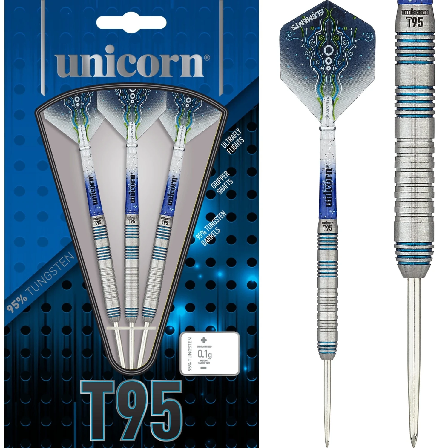 Unicorn T95 Core XL – 95% Tungsten Darts. Features: 95% Tungsten Nickel Alloy, Super slim barrels for extra close grouping, Matched weight series – set of 3 barrels within 0.1g, Unicorn Shafts, Unicorn Flights.